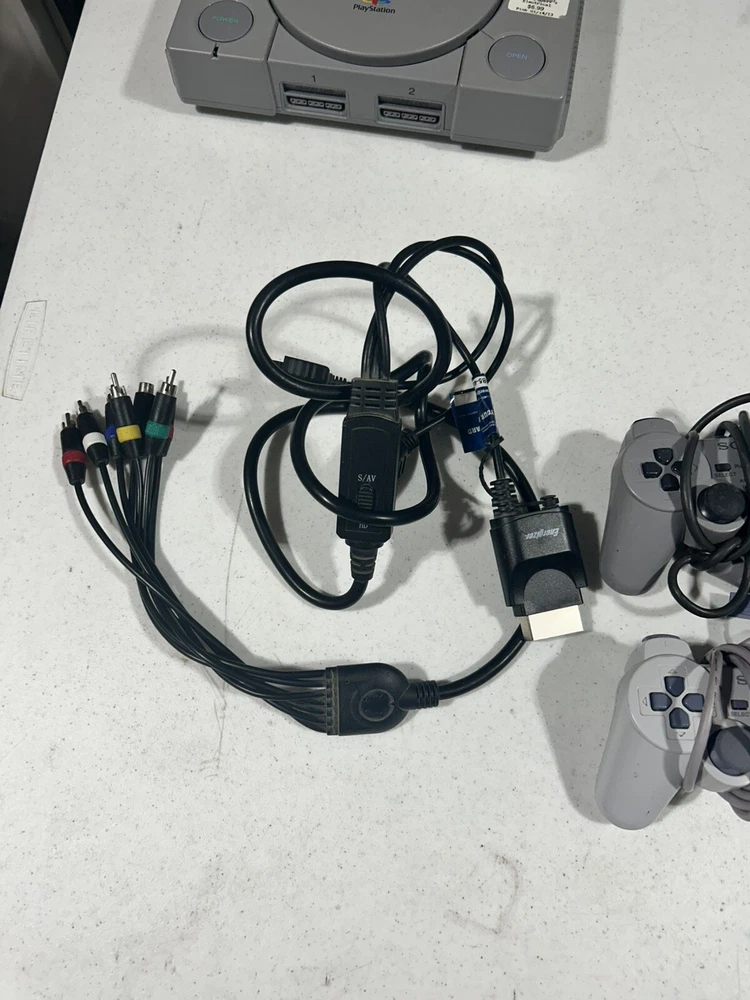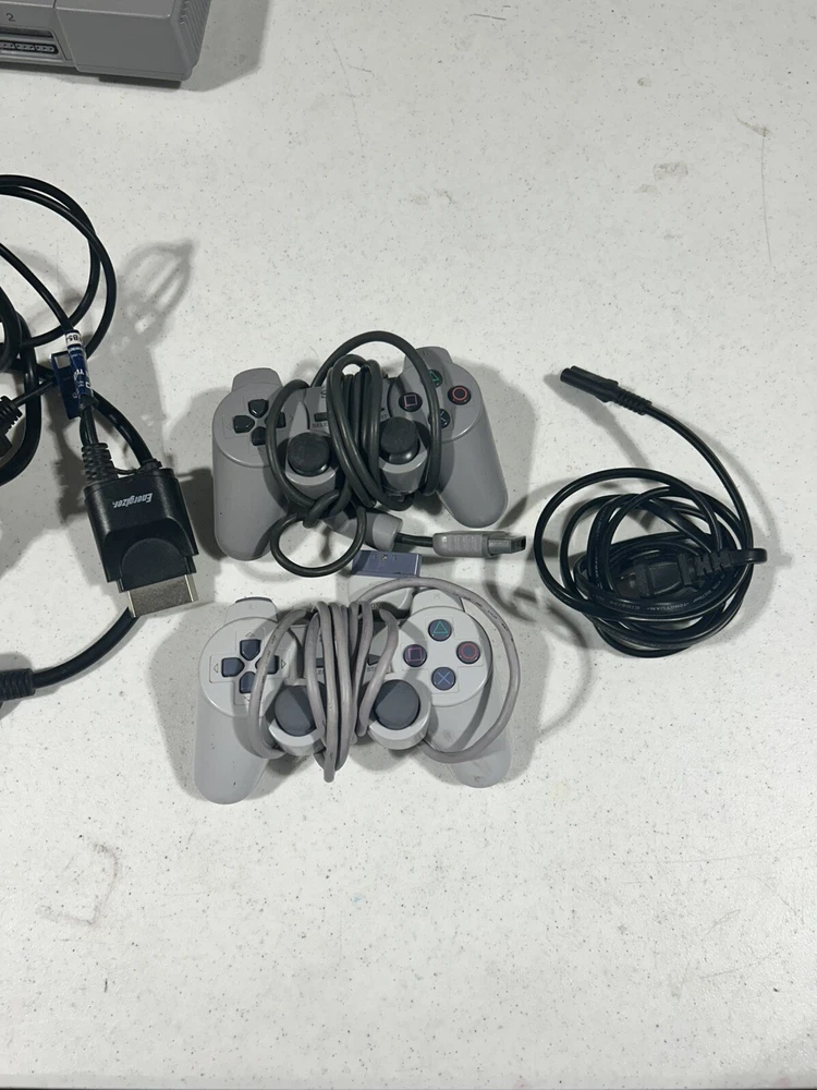 Relive the golden age of gaming with the Sony PlayStation 1 Console. This classic home console comes in a sleek gray color and includes 2 controllers for multiplayer fun. With composite RCA connectivity, you can easily connect the console to your TV and start playing right away. This PS1 console is perfect for collectors and retro gaming enthusiasts alike. Experience your favorite games from the late 90s and early 2000s with this tested and working console. Get your hands on this piece of gaming history today!