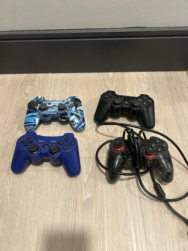 PS3 Slim 250 GB CECH-2001B. System is tested and works great. Comes with 4 controllers. 1 actual Sony PS3 controller and 3 3rd party ones. From my memory, the controllers don’t work great but they still function. Some stick drift on them. Also comes with 10 games and includes titles like Madden, NBA 2K, FIFA and Kingdom Hearts. Great system and lots of hours can be spent on it. Has a power cord but does not come with an HDMI cord. If you have any questions or need additional photos, please let me know!