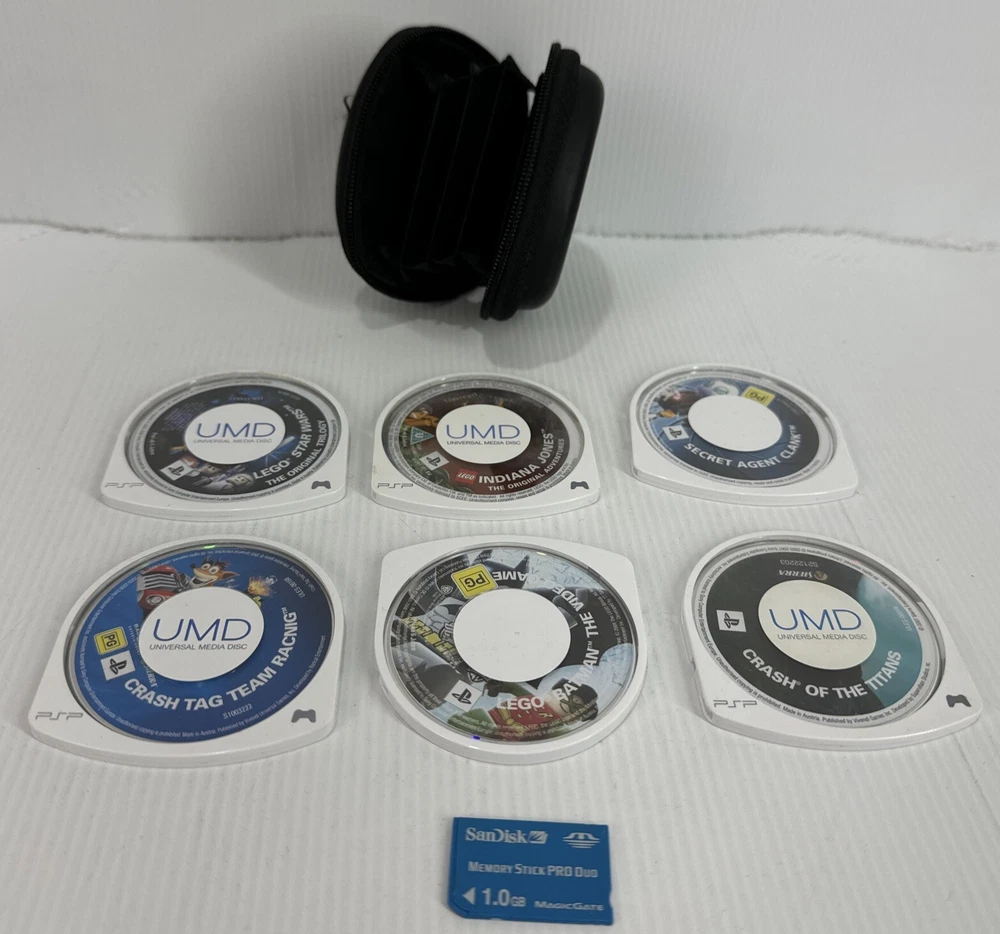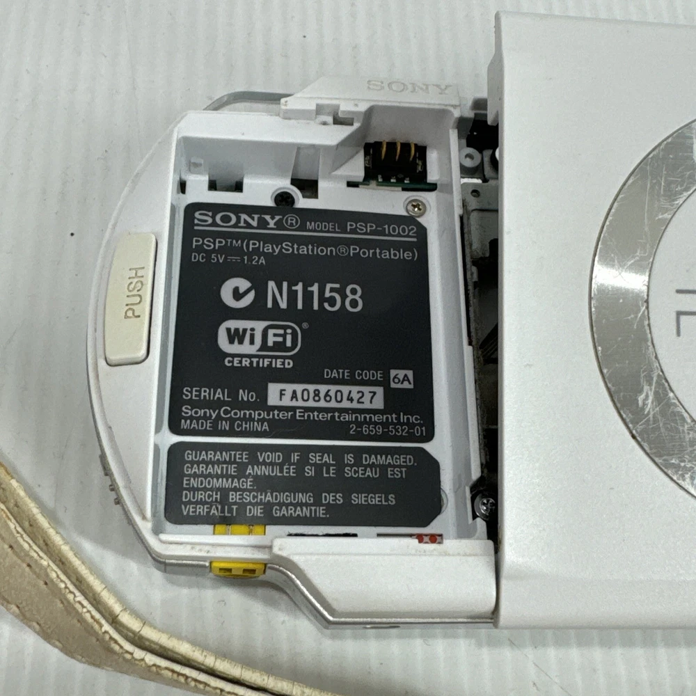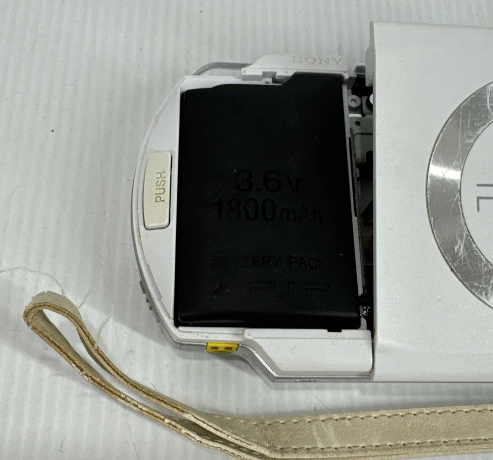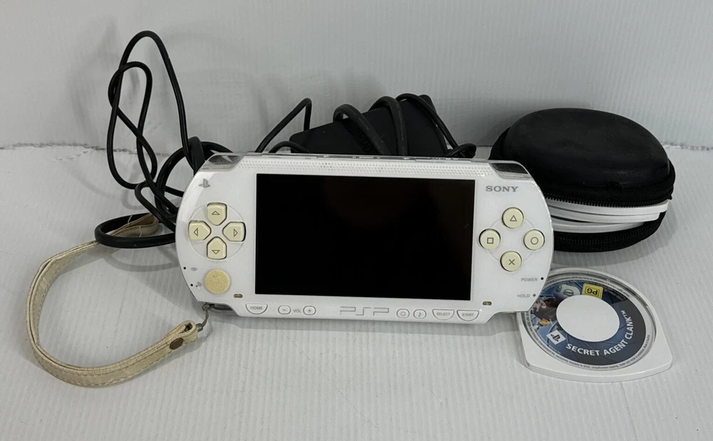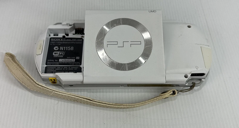 Experience the nostalgia of gaming on the go with the Sony PlayStation Portable PSP Console in a sleek white finish. A true classic, this handheld system was the epitome of portable gaming, offering Wi-Fi capability for online multiplayer and a generous 1 GB of storage capacity for your favourite games. Included in this package is an essential charger to keep your PSP powered up and ready for your next gaming session. Embrace the retro vibe with this iconic Sony PSP, perfect for gamers who appreciate the simplicity of earlier gaming eras. Console has marks Games include