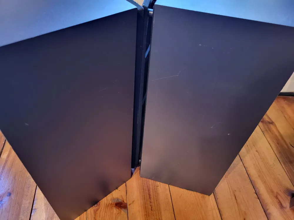 Works great, sound decent for a small form factor. Speakers in okay cosmetic condition has some peeling wrap on the edges.