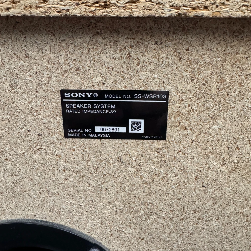 Enhance your home theatre experience with the Sony SS-WSB103 Speaker System. This subwoofer is designed to provide a powerful and immersive sound experience. It is compatible with Sony systems and has a rectangular shape in a sleek black color. Made with plastic and wood materials, this unit is durable and has an impedance of 3 Ohms. It is a wired connectivity type and has a unit quantity of 1. This subwoofer is perfect for those who want to design their own home theatre system. With a weight of 9 lbs, it is easy to move around and place in any desired location.