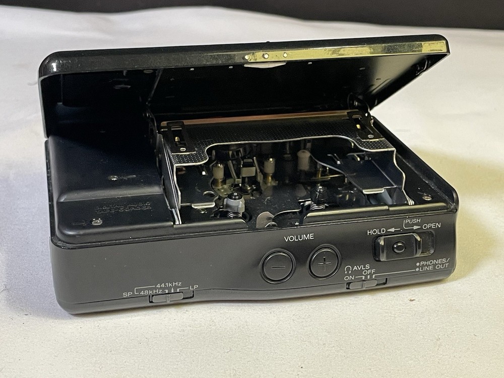 It will not latch closed, therefore it is untested or for parts. This could be a very simple fix to get yourself a premium Sony Walkman collectible. Otherwise this system is very clean as pictured.
