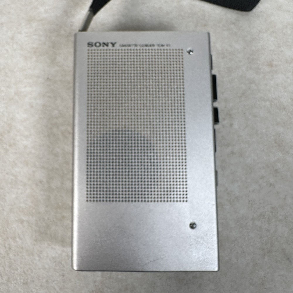 Sony TCM-111 Vintage Silver Cassette Player with Case for Parts or Repair