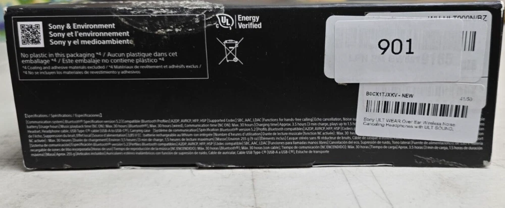 Model:Not AvailableConnectivity:Not AvailableFeatures:WirelessBrand:SonyMPN:WHULT900N/BType:HeadphonesSeller Notes:“Costumer return, powers on but not tested, has signs and scuffs/scratches of use.”Color:BlackUPC:027242928688gtin13:027242928688