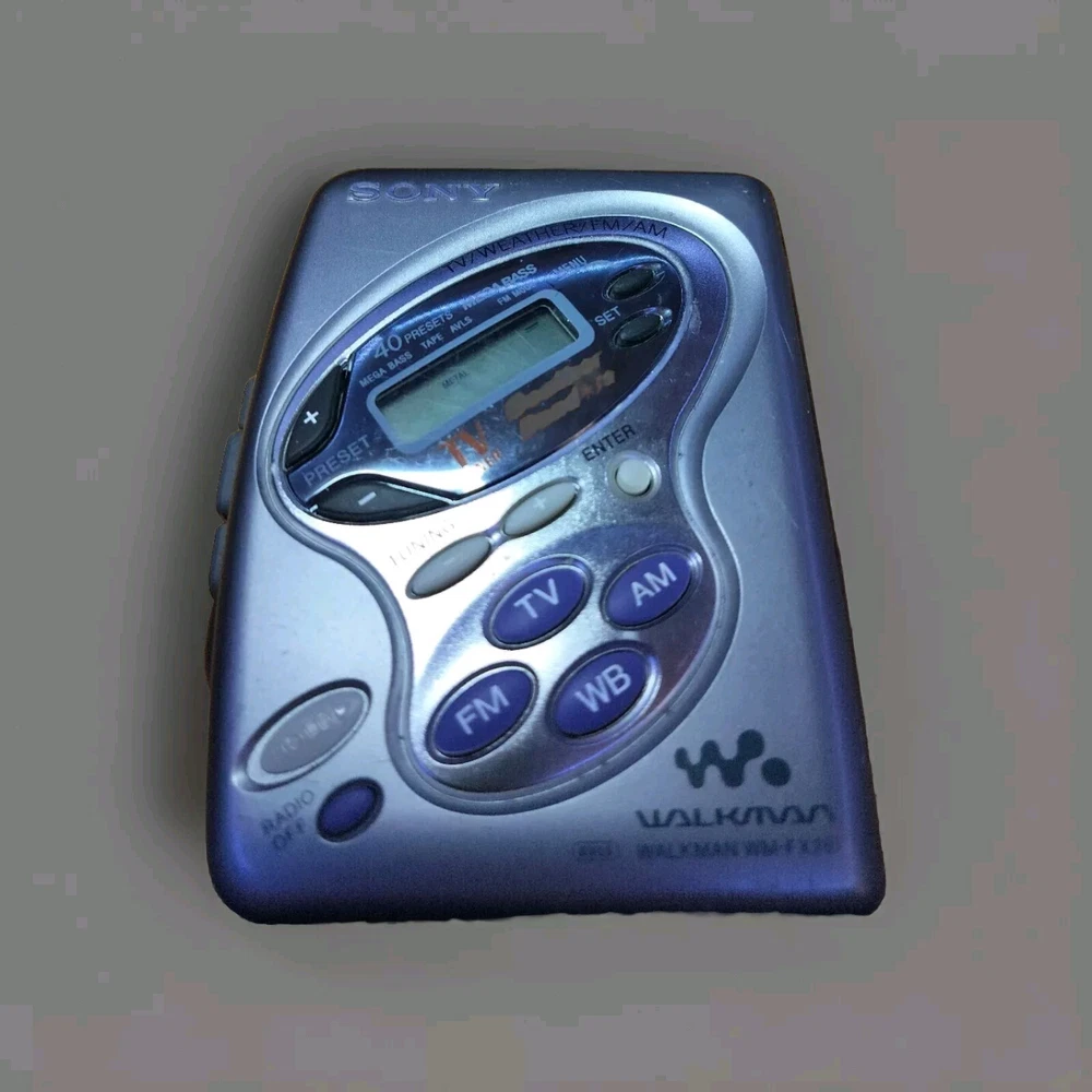 The Sony Walkman Cassette Player is a portable device in silver color that plays cassette tapes. It features a headphone jack for audio output and connectivity via a parallel port. With AM/FM bands, this Walkman model includes a belt drive mechanism for smooth playback. The product is part of Sony's Walkman product line and is compatible with headphones for a complete listening experience.