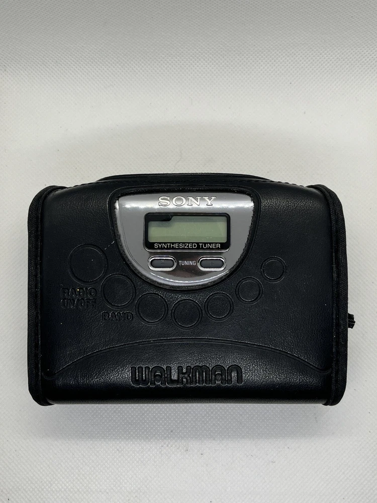 Fully functional. Cleaned inside and out. Belt replaced. Head cleaned. Clean battery compartment. Brand new retro Sony MDR-010 style headphones with orange pads included. Original leather cases included. Small crack along side of housing exists, does not affect playability of unit.
