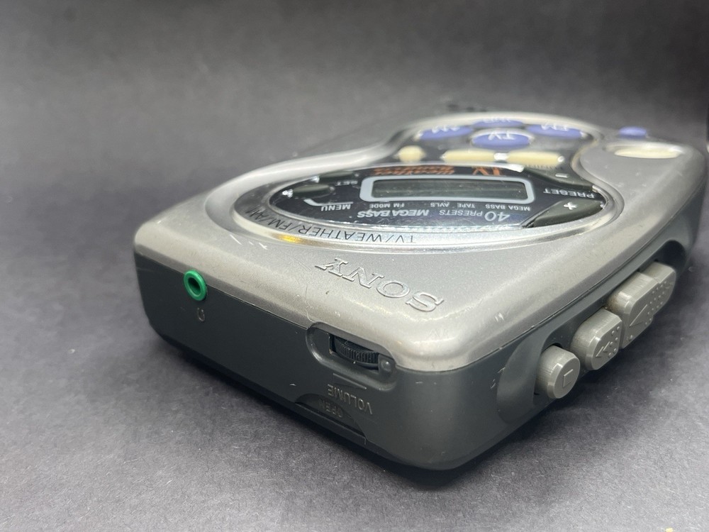 Fully functional. Cleaned inside and out. Belts replaced. Head cleaned. Clean battery compartment. Brand new retro Sony MDR-010 style headphones with orange pads included. TV channel bands may not be received in your area as TV is now broadcast in HD signal. Weather band radio still works fine.