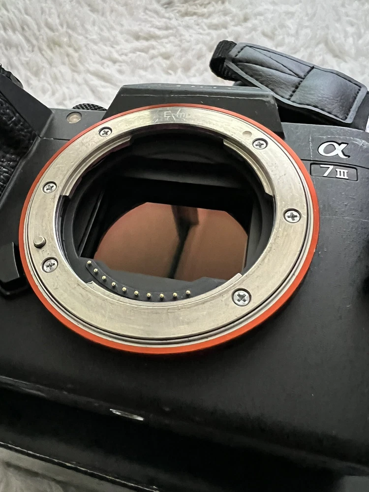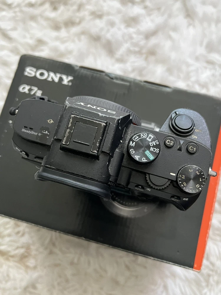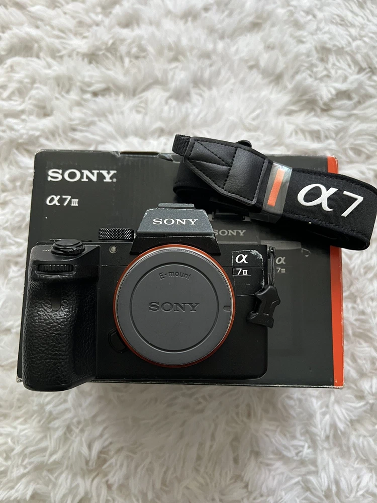 Mainly used this camera for video. Barely took any photos. Comes with Original box, Strap and Camera body, no battery or charger 9000 shutter count The Sony A7III is a black mirrorless interchangeable lens camera from the Sony Alpha series. It offers a maximum resolution of 24.2MP and comes in a body-only configuration, weighing 1.44lb. This particular unit has a shutter count of 9000. With its high-quality imaging capabilities and compact design, the Sony A7III is a popular choice for photographers looking for a versatile and reliable camera system.