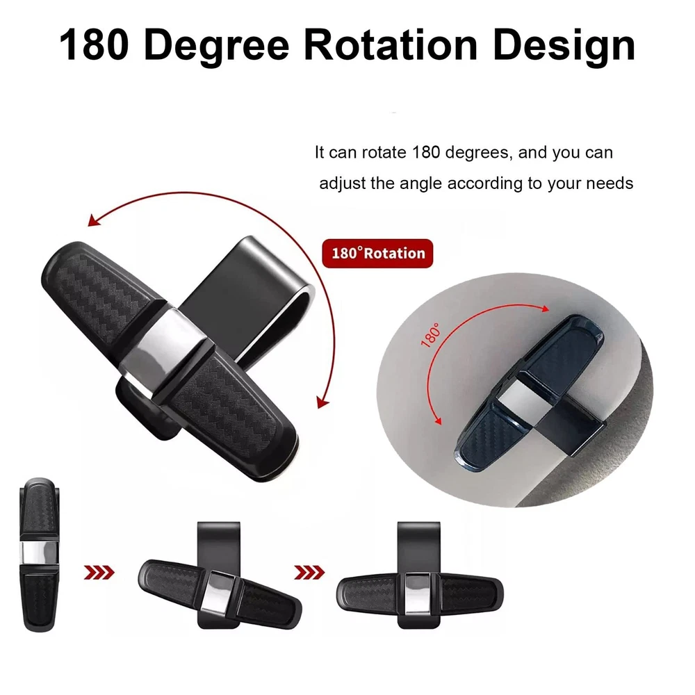 Soporte para gafas de sol y visera para el sol,accesorio para montar en el coche Features: 【Función】Este soporte para gafas de sol para coche puede sujetar 2 pares de gafas de sol y una tarjeta adicional y le brinda un lugar perfecto para colocar sus gafas. Evita que las gafas de sol se caigan y se pierdan. 【Sin obstrucción de la vista】El soporte para gafas de sol para coche se puede sujetar de forma segura a la visera y no obstruirá la vista del conductor. Puede acceder a sus gafas cuando lo desee. 【Ajuste flexible】El soporte para gafas de sol para visera no solo es un clip de doble extremo, también gira 180 grados, lo que le permite ajustar sus gafas de forma horizontal o vertical. Se adapta a todas las gafas y gafas de sol, especialmente a las más gruesas. 【Detalles del producto】El clip para gafas de sol para visera de coche tiene un bloque de esponja incorporado para evitar que sus gafas se rayen. El clip es plano y un poco ancho y no sobrecargará la visera del coche ni dejará un rastro en ella. 【Compatibilidad】El soporte para gafas para viseras de coche es adecuado para viseras solares de menos de 0,98 pulgadas de grosor. El clip para viseras de gafas de sol puede guardar sus gafas de forma segura y mantener un ambiente interior del coche ordenado. SHIPPING We are always working hard to ensure your package arrives as soon as possible. Please understand that some factors like weather, high postal traffic, and the performance of shipping companies are outside of our control. We offer free shipping to the lower 48 states and ship within 3 business days of payment, usually sooner. We do not accept P.O. Boxes. Please provide a physical address.