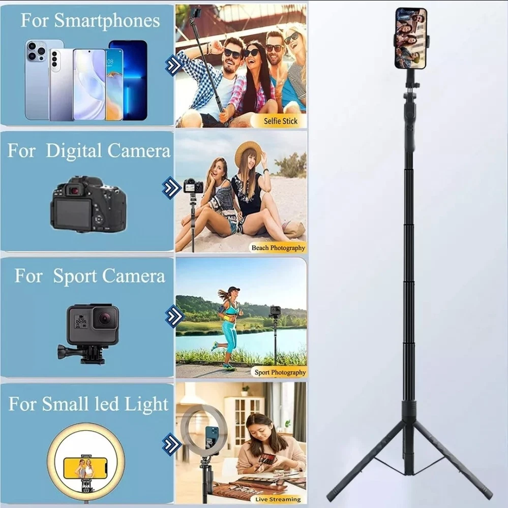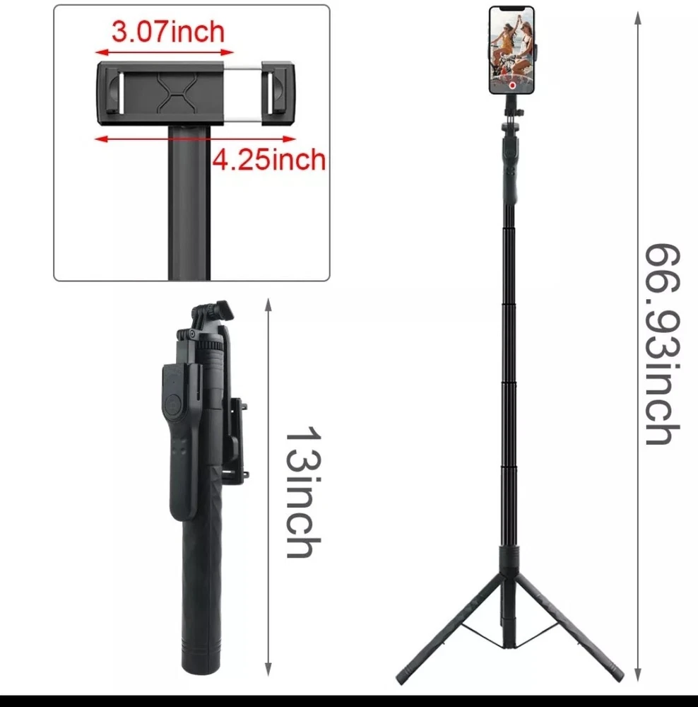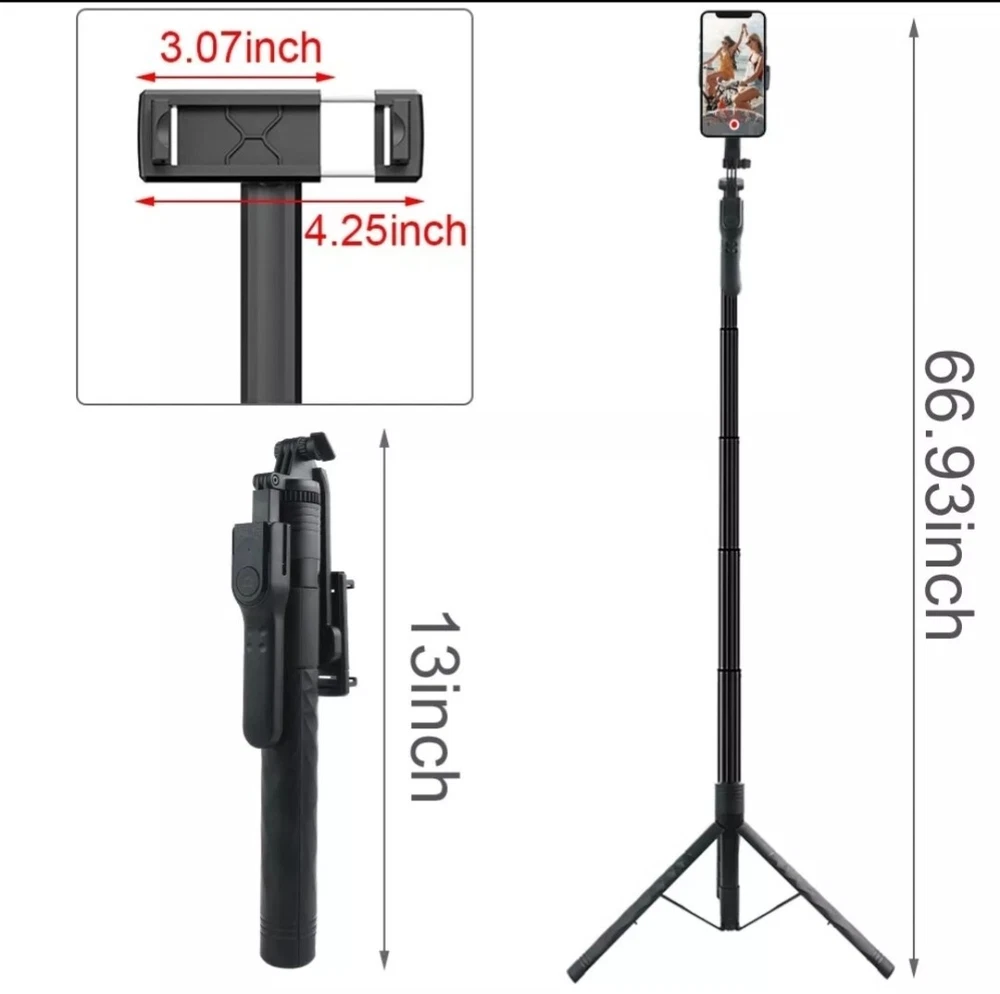 This 68" professional cell phone holder and camera tripod stand with remote selfie stick is a must-have for any photography enthusiast. It is compatible with various phone brands such as Apple and Samsung and comes with a universal 1/4" screw kit. The matte black aluminum material ensures stability and durability while the clip mounting type and 1 ft cable length provide convenience and flexibility in capturing shots. The holder also features a wireless charging standard and can be mounted on a desk for easy access. Its design and finish make it suitable for any occasion, whether it's for personal or professional use. This phone holder is the perfect accessory for capturing high-quality photos and videos without the hassle of holding your phone or camera.
