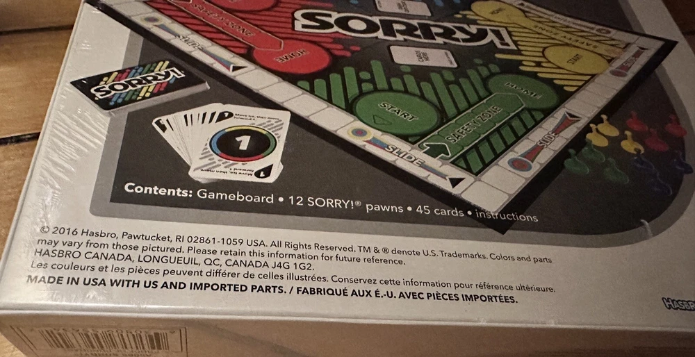 Sorry!Hasbro Game 2-4 Players Classic Hasbro BoardGame Kids Ages 6 & Up "Are you looking for a fun and exciting board game that will keep you and your family or friends entertained for hours? Look no further than Sorry!Sorry! is the classic game of sweet revenge that has been enjoyed by generations of players. The game is easy to learn but challenging to master, and it's suitable for players of all ages." Condition : New, Unused Size: (Please see photos provided for measurements and more detals) Please allow 0.5 error due to manual measurement. Color: Multicolor Note: Due to your monitor settings and monitor pixel definition, the color you see may not be as exact as the actual color of the product. Inclusion: 1 Sorry! Hasbro Board Game ( game board, 12 Sorry! pawns, 44 cards, instructions) FEATURES -Dimensions: 1.61 x 10.51 x 10.51 inches -Material: Plastic -Theme: Games -Genre: Family -Number of Players: 2-4 -Ages: 6 & Up ⭐️⭐️ This comes from a smoke free home. ⭐️⭐️ Whenever possible, we use clean recycled shipping materials to help with the environment. ⭐️⭐️ We list as much information as we can about the item we sell but please check the photos and descriptions provided. Please feel free to message US here at eBay if you have any questions before placing your order. ⭐️⭐️ All sales are photographed and recorded before, during, and after packing for buyer and seller protection. ⭐️⭐️ It would be greatly appreciated if you leave a feedback after receiving the item and are pleased with our transaction. ⭐️⭐️ We are always adding new items, so please go ahead and add us to your favorites. THANK YOU FOR SHOPPING WITH US!