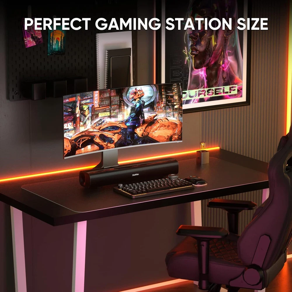 Sound Bars for TV, 40 Watts Small Soundbar for TV,Surround Sound System TV Sound Bar Speakers with Bluetooth/Optical/AUX Connection for PC/Gaming/Projectors,17inch Compact yet Powerful: This 17-inch soundbar packs a punch with its ultra-compact design and 2 full-range speakers, delivering an immersive spatial audio experience for movies, music, and more. Versatile Connectivity: Connect the soundbar to your TV, smartphone, PC, or other devices via Bluetooth, optical, or auxiliary input, with support for an active subwoofer for enhanced bass. Optimized Entertainment: Tailor your audio experience with three equalizer modes (Music, Movie, News) that enhance dialogues, bass, and treble for a more realistic and engaging sound. Easy Setup: Mount the sleek soundbar on your wall with the provided mounting kit, or place it on your desktop – setup is quick and hassle-free. Fire TV Remote Compatible: Enjoy seamless control with the included remote or your existing Fire TV remote, adding convenience to your entertainment system. Speaker Maximum Output Power 40 Watts Frequency Response 20 KHz Connectivity Technology Bluetooth, Auxiliary, Optical Audio Output Mode Surround