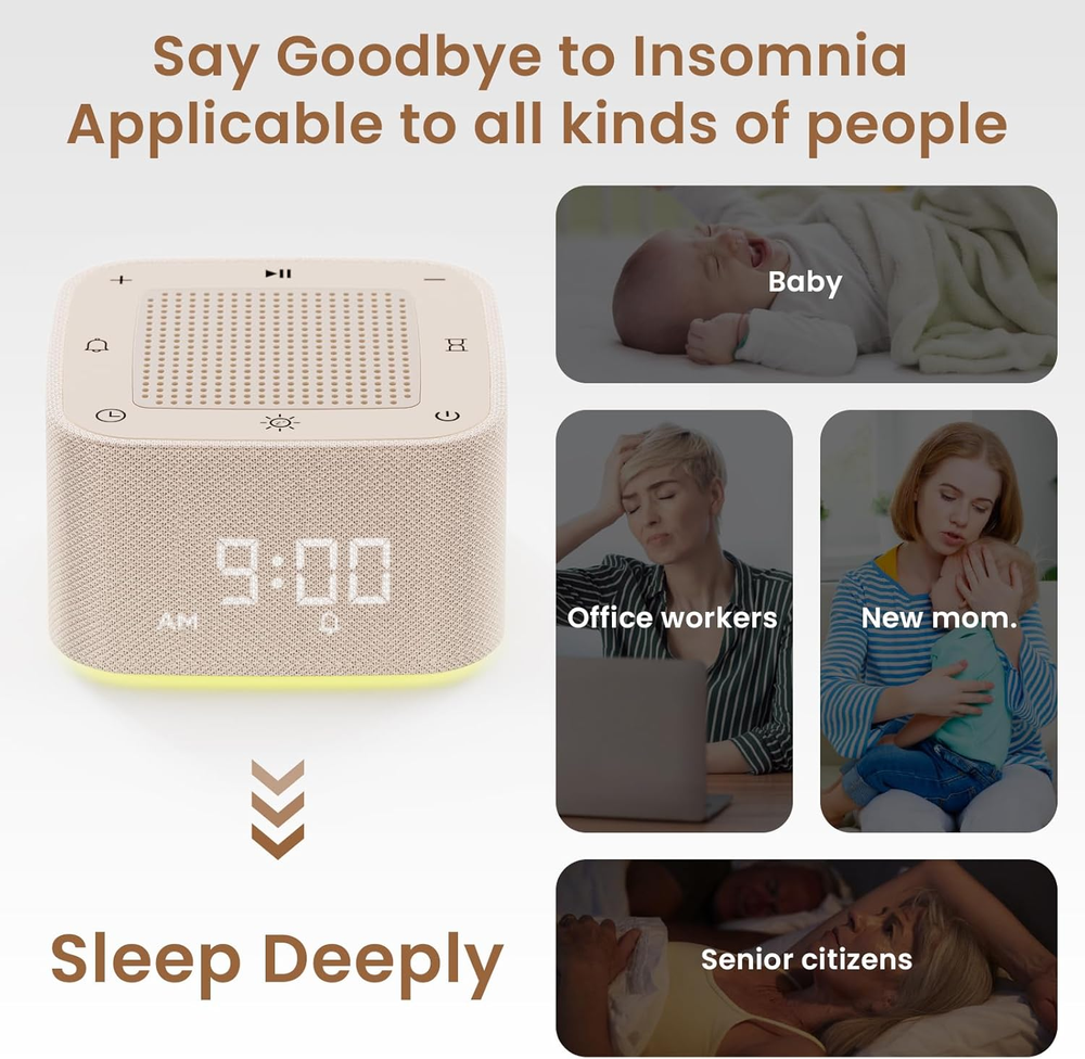 Store New Arrivals Add to Favorite View Feedback Contact Sound Machine Alarm Clock, 32 Soothing Sounds, 8 Night Light, App Control White Noise Sound Machine with Dimmable Clock, Auto-Off Sleep Timer, Volume Control White Noise Machine for Baby, Kids, Adult Description Item model number B005 Power Source Battery Powered Color Beige Product Dimensions 3.15 x 1.85 x 3.15 inches; 11.2 ounces Material ABS+PC+Silicone+Fabric Country of Origin China Music Tracks Trains, Rain, Birdsong, Drizzle, Stream, Brown Noise, White Noise, Pink Noise, Waves, Breeze Size Beige 32 Non-Looping Sleep Sounds: Augnner white noise machine have clearly restore 32 kinds of natural sounds: rain, streams, birdsong, drizzle, breeze, waves, trains, etc. Contains white noise, brown noise, and pink noise, suitable for different groups of people. Dimmable Alarm Clock for Bedroom:Augnner white noise machine for sleeping combines alarm clock, white noise timer, night light and speaker in one. The clock display can be dimmed from off-10%- 50% -100%, not affect sleep at night. Portable and Intelligent Operation: Augnner white noise machine is only 3.15 * 3.15 * 1.85 inches, the sound machine can be carried with you, suitable for home, bedroom, office or travel, give you a heavy sleep night and refreshing morning. Long-lasting Battery and Memory Function: White noise machine has an 800 mA large built-in battery, type-C charger 1-2 hours can used continuously for 8+ hours, it can protect your sleeping environment. Changeable Night Light Design: Augnner white noise sound machine has 8 unique light modes + RGB breathing and 3000 adjustable color temperatures. Infinite dimming and variable color temperature can be achieved through the APP, which can be used in the office, breastfeeding babies, and bedside sleep. Product Description 1 8 Night Lights 2 32 Soothing Sounds 3 Alarm Clock 4 Bluetooth 5.4 Memory Function Auto-off Timer Clock Display Time Format ABOUT US We offer the best prices around on high quality products. Our E-store includes media such as books, movies, music and games while offering electronics, toys, sporting apparel, clothing, tools, general home, garden items and more. SHIPPING We are always working hard to ensure your package arrives as soon as possible. Please understand that some factors like weather, high postal traffic, and the performance of shipping companies are outside of our control. We offer free shipping to the lower 48 states and ship within 2 business days of payment, usually sooner. We do not accept P.O. Boxes. Please provide a physical address. For shipping outside of the continental USA, we only use eBay's Global Shipping Program.The item is shipped to KY and then sent to the rest of the world. International customers are responsible for all duties and taxes. Continue to check out in order to calculate costs for shipping the item to your country. Messages regarding eBay's Global Shipping Program MUST be directed at eBay EXCLUSIVELY. RETURNS We offer a 30-Day Return Policy on items which you are not completely satisfied with. You have the option for a full-refund or an exchange of the item. No returns are available on items shipped outside of the USA. PAYMENT We accept PayPal. CONTACT US This page content is yet to come Please ad us to your favorite seller and visit again later Thank You CUSTOMER SATISFACTION We try our very best to make sure every customer is completely satisfied. If there's a problem, message us! We're happy to help. WE ACCEPT Copyright © 2021 AutoDS. | All Rights Reserved