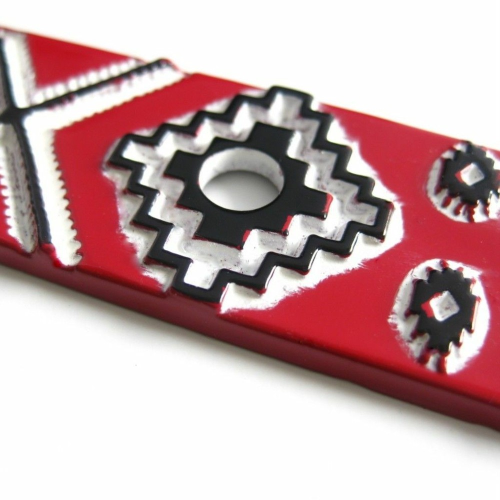 Hickory P376-NR Pull Backplate, NR List Price: $6.49 Our Price: $3.99 New Hickory-Belwith P376-NR cabinet pull Backplate with red, black and white handpainted design Installs with any cabinet pull having 3-inch hole-to-hole spacing Dimensions: 5.63 inch length x 1 inch width x 0.13 inch projection Painted & Lacquered finish provides long-lasting beauty and durability New decorative hardware makes it easy to renovate your kitchen cabinets, bathroom vanity or old furniture without investing a lot of time or money Brand: Hickory Hardware Model: P376-NR Manufacturer: Belwith-Keeler Finish: Painted Color: Red, Black & White Length: 5-5/8 inch Width: 1 inch Projection: 1/8 inch Hole Spacing: 3 inches Collection: Southwest Style: Traditional Material: Zinc Type: Pull Backplate Shape: Rectangle The P376-NR handpainted metal Backplate by Belwith-Keeler Brass features raised and etched surfaces, detailed painting, and strong clear protective coating. The black-painted geometric designs on the backplate represent raised surface areas, while the white paint represents etched surface areas. The installation holes are 3 inches apart. This item was manufacturered in the 1990's and is now discontinued - we uncovered this limited supply still in original boxes and sealed retail packages. You can use these with your own cabinet handles or knobs, or check our store for coordinating items. Store Policies Fast Shipping Shipping cost and estimated delivery time are shown in the Shipping and Payments tab. If you are ordering a combination of different items from our store, please contact us for a combined shipping quote. Once your order ships, we email you a shipment confirmation and tracking number. Returns We offer a 30-day return policy . Items must be returned in the same condition as received, including all items in the original package. Once used, items may not be returned. Please refer to the eBay return policy for details. Customer Service We are happy to answer any questions you have about our products. Just click the Contact Seller link in this listing. About Us PNW Hardware offers a unique selection of brand name knobs, pulls, handles, hooks and other decorative home hardware items, most at savings of 30-75% off list price! All products are stocked in our local warehouse and ready to ship. We pay meticulous attention to the accuracy of our product descriptions and photos to ensure your satisfaction. Our strong customer orientation is reflected in feedback from our customers.