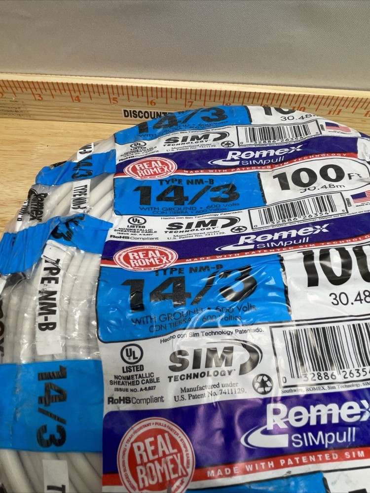 Southwire 100FT 14/3 Solid Romex SIMpull CU NM-B W/G Indoor Electrical Wire