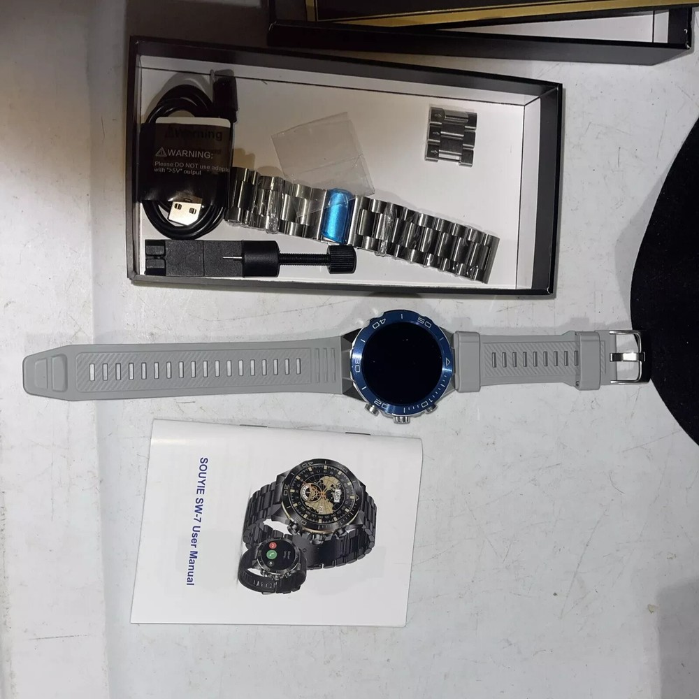 The Souyie Watch for Men features a 1.43-inch AMOLED HD round screen in black color. It is compatible with iOS and Android devices, allowing users to answer/make calls. This tactical-style smartwatch includes fitness tracking capabilities and operates on Android Wear system. It is designed for adult men and has a black band. The watch is powered by 1 Lithium Polymer battery and has origins in China.