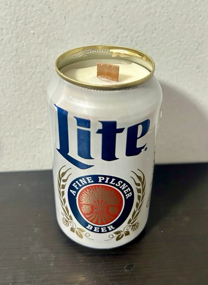 Homemade Soy Candle Upcycled From a Miller Lite Beer Can. This homemade candle made out of an Upcycled Miller Lite Beer can, perfect for the Miller Lite Beer lover or makes a great gift or a novelty decoration! This soy candle features a fresh scent. At Rara’s Trinkets, 98% of our shipping materials are recycled. We recycle and create every single one of our shipping boxes. We believe in helping our planet, one candle at a time! ♻️ We strive to deliver your favorite items, to you on time and in a safely manner. *** Items pictured in posting, are of actual items *** *** Please see Return and Refund Policy with any questions**** SHOP UPDATE - 12/02/2024 💖 Effective todays date, we will be making the switch from wood wicks to natural beeswax cotton wicks! Any Questions regarding this switch, shoot us a message!