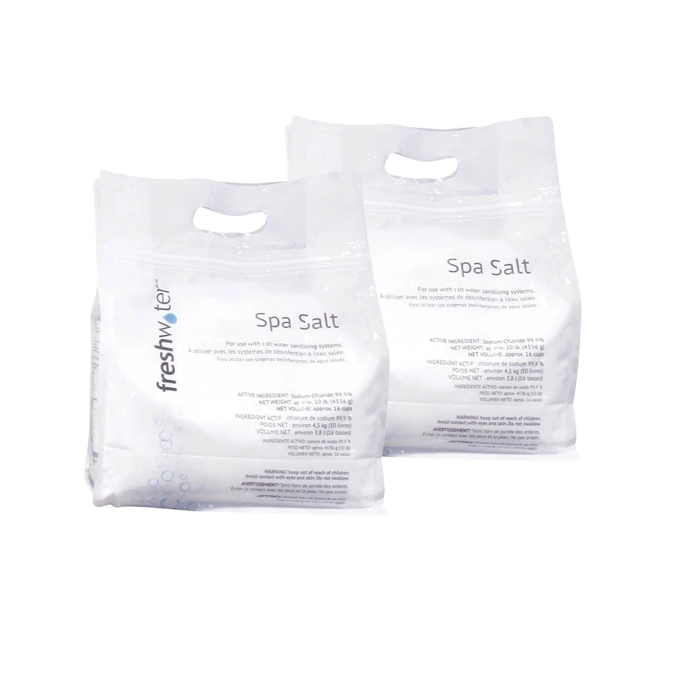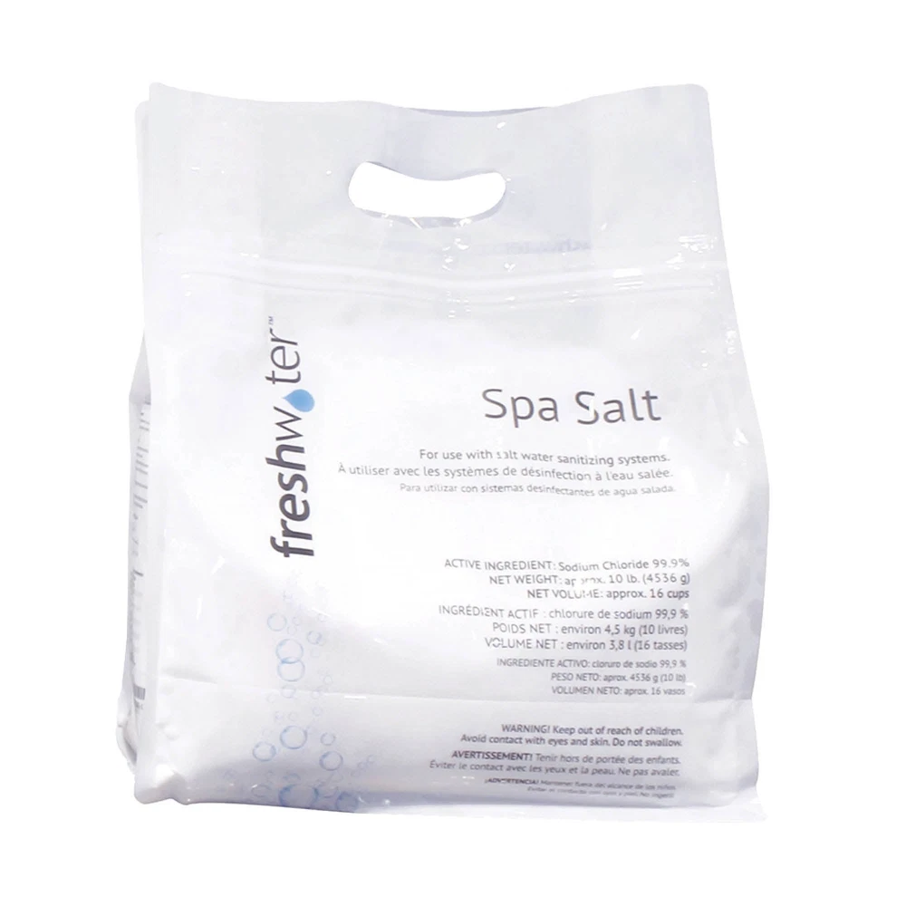 Spa Salt Usage Instructions Test the hot tub water with the Freshwater Salt Test Strips to get you current salt level. While running the jets, add 1/4 to 1/2 cup of Freshwater Spa Salt in the filter compartment waiting 30 minutes between each dose Stop when you have added the desired amount of Freshwater Spa Salt or you are no longer receiving a low Salt error. Disposal Instructions Unused Freshwater Spa Salt can be dissolved in tap water and poured down the a drain. The bag the Freshwater Spa Salt comes in can be discarded in the household trash. Frequently Asked Questions How good of a sanitizer is the Freshwater Spa Salt? The salt in a salt water hot tub is not sanitizing the hot tub. Instead, the salt is used by an electronic device like the ACE Salt Water System or Freshwater Salt System to generate chlorine that is used to sanitize the hot tub. Is there anything else I need to do weekly with my Hot Spring? Yes, you will want to test your hot tub water using Freshwater Test Strips to adjust you Salt System output and balance other readings like pH, Alkalinity, and Hardness. Does this work with the Salt Water Systems? Yes, the Freshwater Spa Salt is intended for use with hot tub Salt Water Systems. What is the difference between Freshwater Spa Salt and table salt? Fundamentally Freshwater Spa Salt and table salt are both NaCl. The difference mainly false on the grain size and the ease of dissolving the Freshwater Spa Salt in the water. Can you use this with Bromine? No, this product must be used with a chlorine based salt system. Can you use this instead of Chlorine? Yes/No, this product is what hot tub Salt Systems use to generate chlorine. The need for Freshwater Granular Chlorine is dependent on your water chemistry and how well your salt system is functioning. Spa Salt Usage Instructions Test the hot tub water with the Freshwater Salt Test Strips to get you current salt level. While running the jets, add 1/4 to 1/2 cup of Freshwater Spa Salt in the filter compartment waiting 30 minutes between each dose Stop when you have added the desired amount of Freshwater Spa Salt or you are no longer receiving a low Salt error. Disposal Instructions Unuséd Freshwater Spa Salt can be dissolved in tap water and poured down the a drain. The bag the Freshwater Spa Salt comes in can be discarded in the household trash. Frequently Asked Questions How good of a sanitizer is the Freshwater Spa Salt? The salt in a salt water hot tub is not sanitizing the hot tub. Instead, the salt is uséd by an electronic device like the ACE Salt Water System or Freshwater Salt System to generate chlorine that is uséd to sanitize the hot tub. Is there anything else I need to do weekly with my Hot Spring? Yes, you will want to test your hot tub water using Freshwater Test Strips to adjust you Salt System output and balance other readings like pH, Alkalinity, and Hardness. Does this work with the Salt Water Systems? Yes, the Freshwater Spa Salt is intended for use with hot tub Salt Water Systems. What is the difference between Freshwater Spa Salt and table salt? Fundamentally Freshwater Spa Salt and table salt are both NaCl. The difference mainly false on the grain size and the ease of dissolving the Freshwater Spa Salt in the water. Can you use this with Bromine? No, this product must be uséd with a chlorine based salt system. Can you use this instead of Chlorine ? Yes/No, this product is what hot tub Salt Systems use to generate chlorine. The need for Freshwater Granular Chlorine is dependent on your water chemistry and how well your salt system is functioning. × Shipping info Click the Shipping & Payments tab above the listing description for more info FREE Shipping Click the Shipping & Payments tab above the listing description for more info! Additional delivery notes PICK UP OPTION Sorry, our items are NOT available for pick-up. PAYMENT Immediate payment is required upon selecting "Buy It Now" or upon checking out through the cart. We accept payment via U.S. PayPal accounts and all Major Credit Cards, Debit Cards & Google Pay. We are legally required to collect sales tax in those states and localities where we maintain a physical presence (nexus). The applicable amount of sales tax charged to an order will be calculated based on the shipment destination's state and local sales tax laws. Thank you for shopping with us on eBay! Additional Information No additional information at this time Ask seller a question You might also like FreshWater Salt System Cartridge FreshWater Salt System Contact To contact our Customer Service Team, simply click the button here and our Customer Service team will be happy to assist. Ask seller a question © My Hot Spring Shipping & Payments Shipping is FREE for this item Payment Accepted Payment Methods Immediate payment is required upon selecting "Buy It Now" or upon checking out through the cart. We accept payment via U.S. PayPal accounts and all Major Credit Cards, Debit Cards & Google Pay. We are legally required to collect sales tax in those states and localities where we maintain a physical presence (nexus). The applicable amount of sales tax charged to an order will be calculated based on the shipment destination's state and local sales tax laws. Thank you for shopping with us on eBay! Returns Returns are accepted Items must be returned within 30 days of the auction ending Buyer will pay for return shipping. eBay integration by