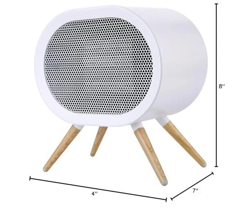 Safer to Use: The small space heater has overheating & tipped over protection. The ceramic heater shuts off after 6 hours of use to protect the heating plate. Automatically power off when dumping. Make heating safer 3 Adjustable Heating Mode: Our portable desk heater has 3 modes: 1000W high heat(H), 500W low heat(L), natural wind(F), heats up space or room quickly, bring you proper warmth as you need Energy Efficient: This space heater for office provides faster and more efficient heating, reduces energy consumption. It’s quite small, but does a good job of heating space which also can help lower your energy bills Durable Material: Our small heaters for indoor use adopt latest fire-resistant materials, PTC ceramic heating element make this desk heater more durable and more effective faster heating, this heater fan can heat up in 2 seconds. Low noise 45 db. Cute and Stylish Design: Simple and elegant appearance design makes this small heater looks more modern and aesthetic. Not only a mini electric heater, but also as homer décor. The upgraded 4- plastic-leg with bottom non-slip silicone design is more stable than three leg, not easy to falls over Portable Mini Space Heater: 7 x 4 x 8 inches, small and space-saving. Compact size make this ceramic heater easy to fit anywhere or move around. First option as a winter Christmas gift