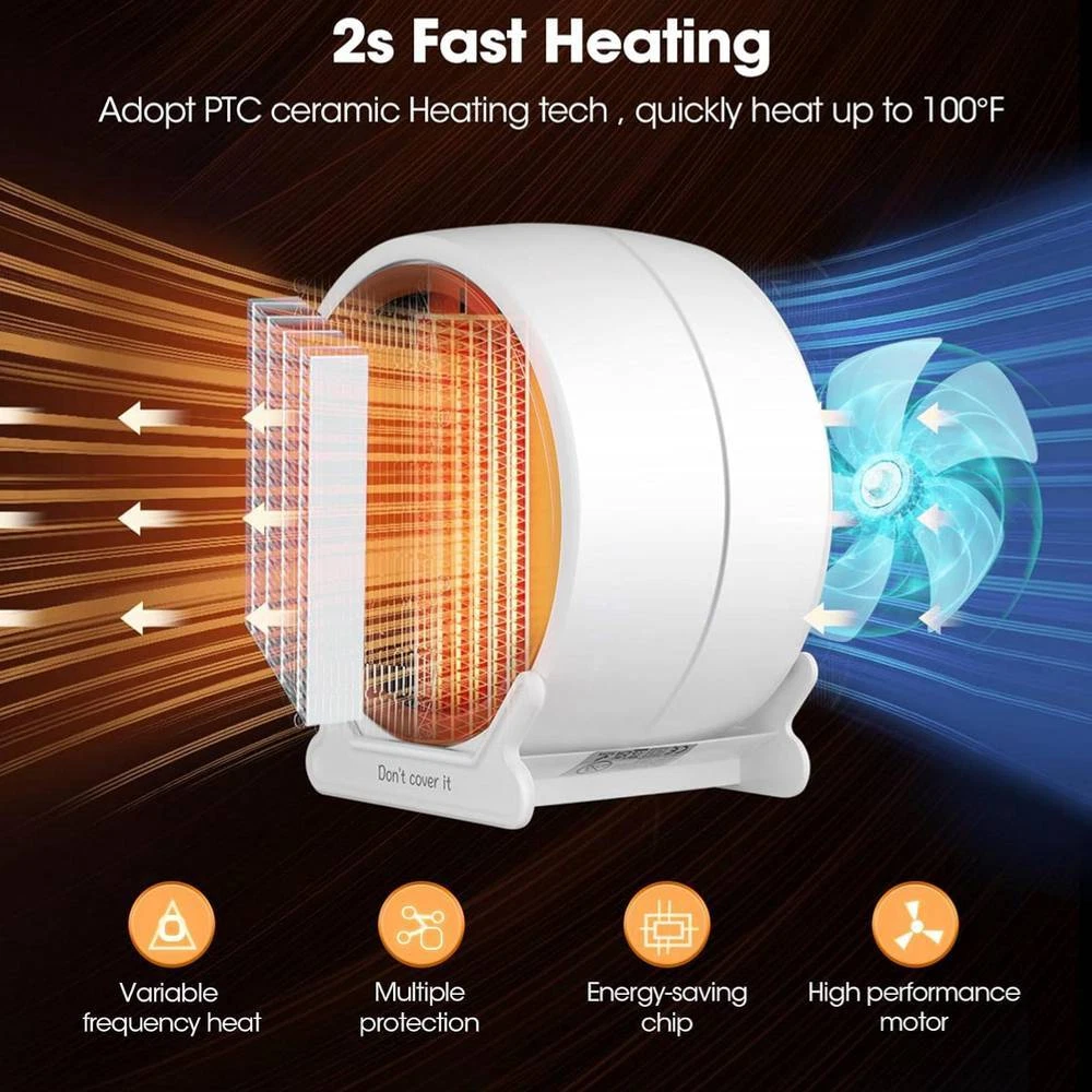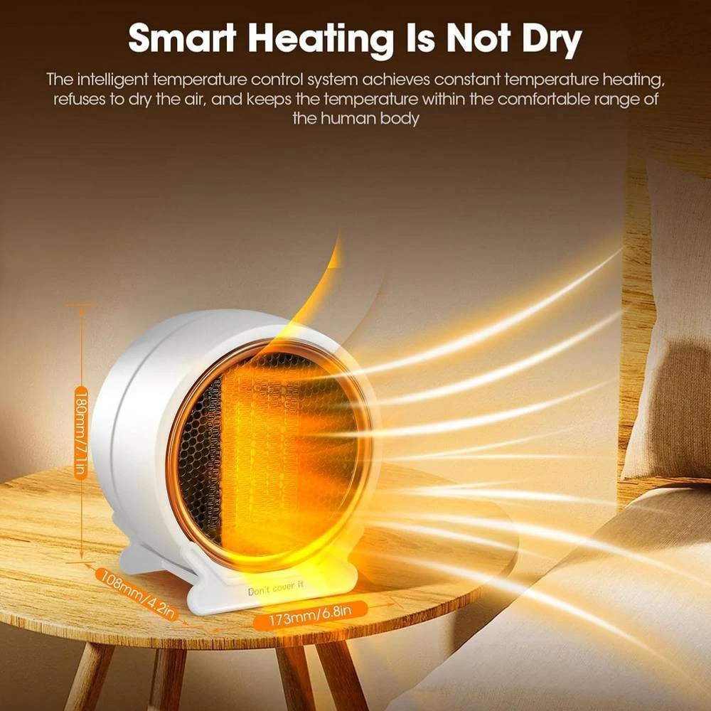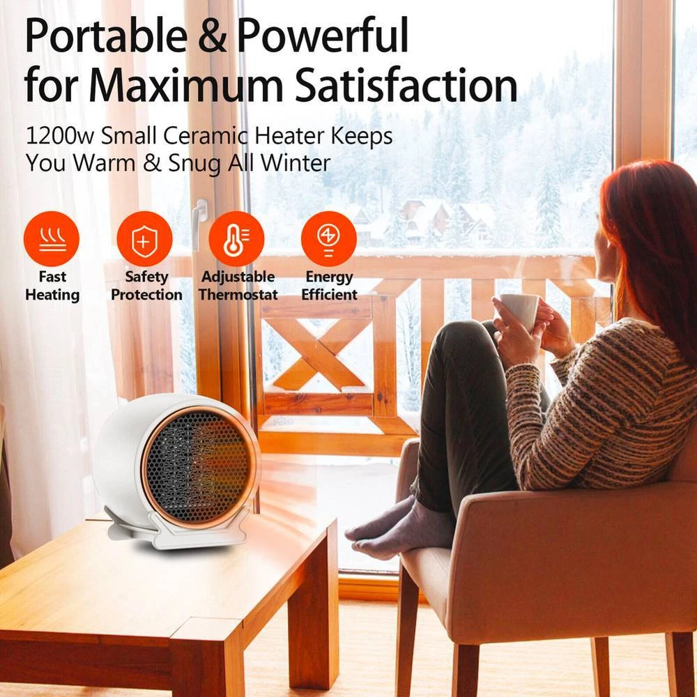 Note: . Pl ease don't cover the fan when the machine working. Please don't use it for a long time. There is no light in the use of the product, and the picture is a display effect. Factory mass production, the product may have small scratches,we promise all products are brand new. F eatures: Energy Saving Fast Heat Mode Our fan heater has 2 heating levels and fan mode: 1200W (high heat) / 800W (low heat) ,the low setting does not require much electricity to work, reduce your electricity bills by heating with this energy saving space heater. Ceramic heaters that heat up quickly, instantly and circulate warmth through the air, mini space heaters give off big heat! 3S Fast Heating, Instant Warmth This portable Space Heater, PARIS RHÔNE Ceramic Heaters for Home Low Energy, 1200W, Portable Heater for Office, Study[Energy Class A++] heater comes with three modes, including fan mode, 800W low heating and 1200W high heating. High-efficiency heaters indoor portable electric heater can emit a lot of heat within 3S, quickly indoor heater keeping your large room cozy and comfortable all the time. Quiet Operation Due to the ultra-quiet design(30-50db), you can hardly feel the operation of the room heater during use, and you will not be disturbed during sleep. Portable Mini Space Heater This electric heater with a handle design is very convenient to carry and move, and can be placed wherever you need it. The space heater for indoor use is very small, with a size of 12*11.5*21.5 cm, which does not take up too much space. Even in the cold winter, the mini heater can give you a warm night. Descriptions: Name:Smart Heater Fan Type:Heater Fan/Space Heater Features:800/1200W Power,PTC Material,Overload Protection,2 Levels Winds,Portable Design,Tip-Over Protection,3s Heating Rated voltage:220V-240V,50/60Hz Power:800/1200W Gear: low gear 800W, high gear 1200W Noise: ≤50dB Applicable area: 10-20 ㎡ Heating mode: PTC ceramic heating Product size: 16.5*11*18cm Single weight: 0.88kg Plug:US Plug Color:White Packages: 1x US Plug Heater fan 1x Manual