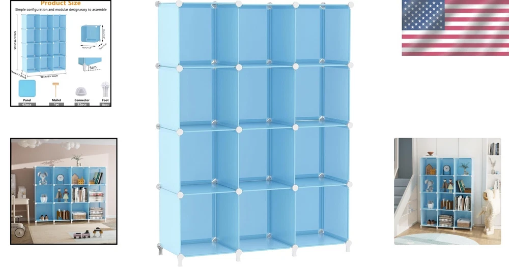 Unit Count: 1.0 Count Shape: Cube Size: 12 Cube Maximum Weight Capacity: 132 pounds Product Care Instructions: Wipe With Dry Cloth Item Length: Cube Storage Organizer Item Width: Cube Storage Organizer Set Includes: Cube Storage Additional Parts Required: No Personalized: No Item Weight: 15.03 pounds Material: Plastic, PP Panel, Metal Frame, ABS Resin Connectors Suitable For: Toys Number Of Items: 1 Room: Kids Room, Closet, Bedroom, Living Room, Playroom Installation Type: Freestanding Brand: Unbranded Weight Limit: 132 Pounds Finish: Metal Features: Stackable, Space Saving, Lightweight, Expandable, Adjustable Department: Kids Type: Cube Storage gtin13: Does not apply UPC: Does not apply Recommended Uses For Product: Indoor Age Range (description): Kid Number of Items in Set: 1 Room Type: Kids Room, Closet, Bedroom, Living Room, Playroom Door Mechanism: Open Face Packaging: Flat Pack Package Dimensions: 16.18 X 13.03 X 6.1 Inches Specific Uses For Product: Toys, Clothes, Shoes, Books Weight Capacity: Maximum Weight: 132 Pounds Furniture Finish: Metal Included Components: Hammer Mounting: Free Standing Theme: Space Style: Modern Maximum Weight per Shelf: 11 pounds Item Height: Cube Storage Organizer Number of Shelves: 12 Color: Blue Distance from Floor to Bottom: Not Specified Required Tools: No Tools Required, Hammer