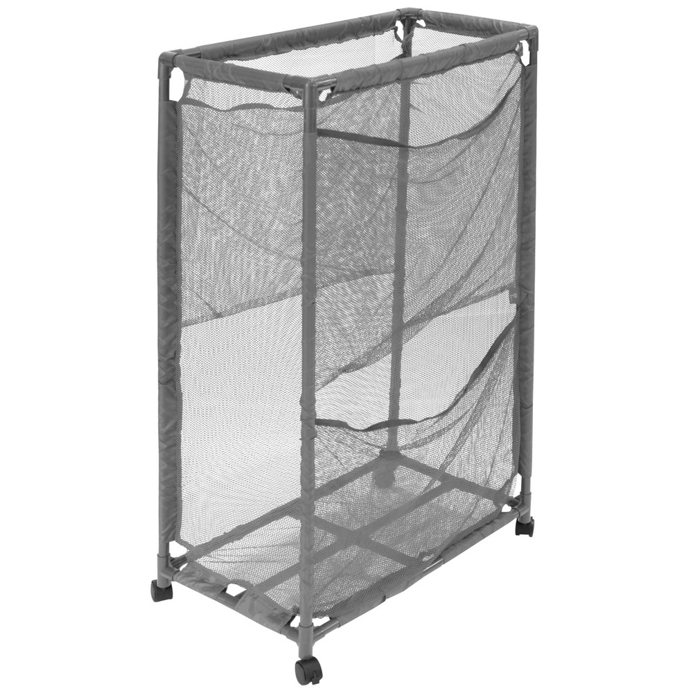 The Pool Accessories Organizer is great for Home use, Swimming Pool Decks, Patio, and on the beach. Use the side pockets to store smaller toys and use the large compartment to store your large floaties and noodles. Made from UV resistant mesh fabric, be worry free from the color fading from the sun's rays. Furthermore, the included wheels make it easy to transport the Organizer with ease. Comes in a vibrant gray color! 14.4" W x 24.6" L x 42.5" H Made of a weather resistant PVC along with a high quality and durable, weather and tear resistant mesh, provide a long-lasting solution for your pool storage needs The slim style is designed for narrow areas. Wheels are lockable on one side to allow for securing the bin in a stationary position or rolling as needed. Side pockets provided for additional storage of small items. Store toys, inflatables, floats, noodles, balls, goggles, pool cleaning tools, and more. Assembled Size: 14.4" W x 24.6" L x 42.5" H Cubic Feet (Mesh Area): 8 Choose from our wide variety of sizes and blue, white, brown or gray color options Tool Free Assembly with our easy-to-follow instructions.