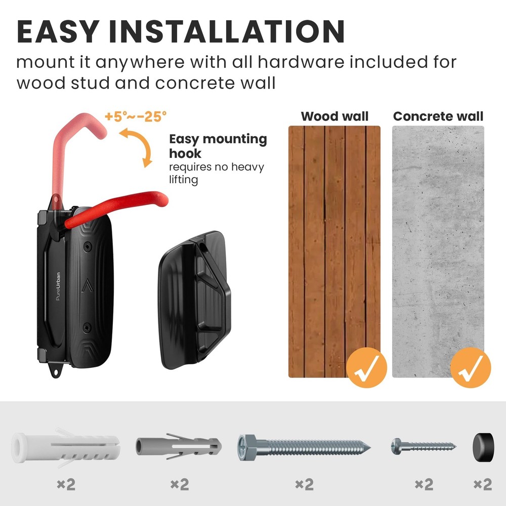 Swivel Bike Wall Mount - Garage Wall Bike Rack, Bicycle Hook Hanger - Space Saving Storage Bike Wall Holder for Home & Garage Universal Bike Compatibility: The S-BK3 bike rack is a one-size-fits-all solution. Whether you own a road, hybrid, cyclocross, MTB, or BMX bike, this rack is tailored to accommodate a variety of bicycle with a generous tire width accommodation of 3.5". Revolutionary Space Saver: Experience the future of bike storage with the S-BK3 bike rack. Its unique swivel design lets you pivot your bike effortlessly against the wall, instantly freeing up valuable space in your home, garage, or apartment Stylishly Functional: Don't just store your bike; showcase it. The SBK-3 features a chic matte black finish that complements any decor. It's not only a practical storage solution but also an addition to your home's style quotient. Uncompromising Strength: "Feel the confidence of a sturdy storage solution. The S-BK3, with its capacity to hold bikes up to 30kg/66lbs, is built to support a wide range of bikes - from road racers to hefty mountain bikes - ensuring your prized possession is securely and safely stored Join the Ranks of Satisfied Cyclists: Don't just take our word for it – join the community of cyclists who have transformed their storage woes into storage wins. Experience the blend of functionality, strength, and style that the S-BK3 offers, and see why it's the preferred choice for bike enthusiasts. The S-BK4 On-Wall Bike Rack offers a sleek and space-saving solution for storing bikes in homes, apartments, and garages. Crafted from durable steel and plastic, this wall-mounted bike rack is designed to support universal bike types up to 30kg/66lbs. Its unique DIY wall display feature coupled with a tire stop ensures that both your bike and wall stay scratch-free. Shipping We offer FREE shipping on all orders! We ship within Three business days of payment, usually sooner. We use a selection of shipping services such as UPS, FedEx, USPS etc. We only ship to the lower 48 states, no APO/FPO addresses or PO Boxes allowed. Local pickups and combined shipping options are not provided at this time. Return You can return a product for up to 30 days from the date you purchased it. Any product you return must be in the same condition you received it and in the original packaging. Please keep the receipt. Payment We accept payment by any of the following methods: PayPal Please pay as soon as possible after winning an auction, as that will allow us to post your item to you sooner! Feedback Customer satisfaction is very important to us. If you have any problem with your order, please contact us and we will do our best to make you satisfied. Contact Us If you have any queries, please contact us via ebay. We usually respond within 24 hours on weekdays. Please visit our eBay store to check out other items for sale! Thank you for shopping at our store.