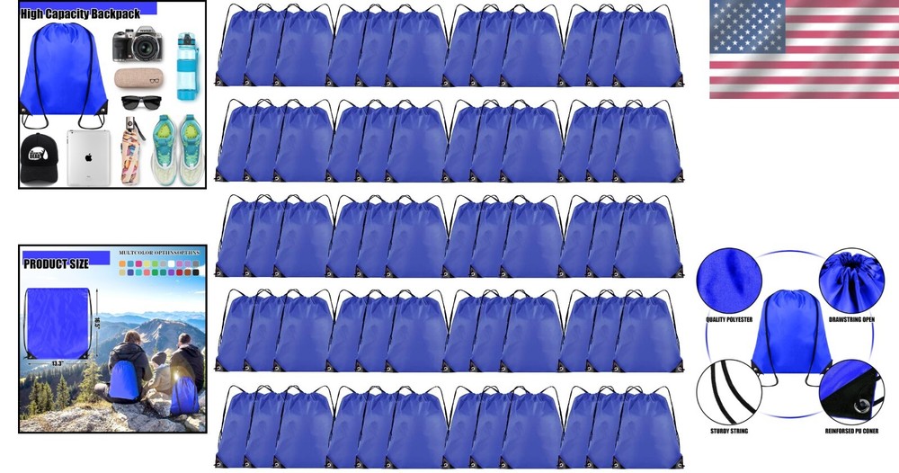 Spacious 60-Piece Drawstring Backpack Set - Perfect for Team Favors and Gifts ‹ › ‹ › ‹ › ‹ › ‹ › ‹ › ‹ › ‹ › 60-Piece Drawstring Backpack Set Perfect for Team Favors and Gifts Versatile Usage: Available in a vibrant range of colors, these drawstring backpacks cater to your personal style. Ideal for various occasions, including camping, picnics, parties, gym sessions, and more. Convenient Size: Measuring 42cm (16.5 inches) long and 35cm (13.8 inches) wide. Crafted from high-quality nylon material, ensuring durability and easy foldability for space-saving purposes. Ultra-lightweight and easy to carry around, making it perfect for any outing. Spacious Capacity: Features a roomy interior that can accommodate lightweight essentials such as clothes, shoes, hats, footballs, books, snacks, and more. Adaptable for various occasions—be it gym workouts, beach days, or party celebrations. Personalized Design: Enjoy a unique DIY experience with hot-pressed prints, allowing you to customize each bag with your desired pattern. Make it a special prize for loved ones or a memorable gift for event attendees. Quality Assurance: Made with thickened polyester fabric that is robust and resistant to wear and tear. Enhanced customer satisfaction through our commitment to high-quality products and reliable customer service. Why Choose the 60-Piece Drawstring Backpack Set? Transform your gifting experience with a blend of functionality and style! Whether navigating a team competition or wrapping favors for a birthday gathering, our luxurious drawstring backpacks offer an exquisite solution to all your event needs. Big enough to hold essentials yet fashionable enough to appeal to everyone's tastes, these bags provide lasting durability while allowing for personalization, making them unforgettable keepsakes. Don’t settle for mundane favors—choose our 60-Piece Drawstring Backpack Set and make every occasion a celebration! Shipping Free & Fast Shipping - We offer free shipping to most of the USA with a normal delivery time of 3-7 days. However, due to the current situation, additional delivery time (up to 3 weeks) may be required for some items. Alternative Carriers - We may use alternative carriers (e.g. USPS, FedEx, UPS, etc.) to ensure your package arrives safely and on time. Due to the use of multiple carriers, we are unable to provide a tracking number automatically. Handling Time - Orders are processed and shipped within 1-2 business days of receiving cleared payment. Shipping Restrictions - Shipping to Alaska, Hawaii, Puerto Rico, Guam, and other US territories may incur shipping charges or delivery restrictions. Please contact us before ordering, or your order can be refunded/cancelled. State Restrictions - There may be restrictions based on your state of purchase. For example, certain items may not be shipped to California due to state regulations. Contact for Tracking Updates - If you require tracking updates or have any concerns about the delivery of your order, please feel free to contact us, and we will be happy to assist you. Return Please see our eBay Return Policy. Thank you. Payment We accept all major credit cards, PayPal, and Apple Pay for your convenience. Your payment information is secure and encrypted to ensure a safe and seamless transaction. Please complete your payment within 3 days of purchase to avoid any delays in shipping. Feedback Your feedback is extremely important to us. We strive to provide the best products and customer service possible. If you are satisfied with your purchase, please take a moment to leave us a positive review. If you have any concerns or issues with your order, please contact us before leaving negative feedback. We are committed to resolving any problems and ensuring your satisfaction. Contact Us If you have any questions or concerns, please feel free to reach out to our customer support team. You can contact us through the eBay messaging system. We are available Monday to Friday, 9:00 am to 5:00 pm EST, and we will do our best to respond to your inquiry within 24 hours. Thank you for supporting our small family business! UPC: Not Set Strap Drop: Not specified Unit Quantity: 60 Material: Polyester Theme: Not Set Lining Material: Not specified Features: Folding,Lightweight,Personalized Design Handle/Strap Material: Polyester Character: Not Set Closure: Drawstring Customized: DIY image printing Occasion: Casual,Gym,Party,Picnic,Camping Brand: Unbranded Style: Cinch Sack Department: Drawstring Backpack Bulk Color: Navy Blue Size: Large Pattern: Not Set Bag Width: Not Set Bag Height: Not Set Bag Depth: Not specified Product Line: Not Set Fabric Type: Not specified Country/Region of Manufacture: Not Set Hardware Material: Not specified Handle Style: Not specified Model: Not Set Year Manufactured: Not Set MPN: Not Set Unit Type: lb Vintage: Not Set Handmade: Not Set Personalize: Not Set