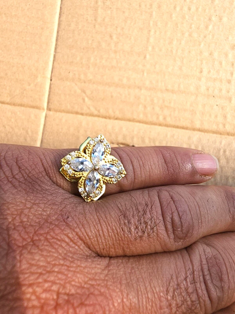 This product is an Italian gold sunflower ring, designed as a beautiful accessory for women. The ring features a sunflower motif, adding a touch of elegance and sophistication to any outfit. Its gold color enhances the overall aesthetic, making it a stylish piece that can complement a variety of styles and occasions. Perfect for adding a touch of glamour to any woman's look, this sunflower ring is sure to be a standout accessory in any jewelry collection.