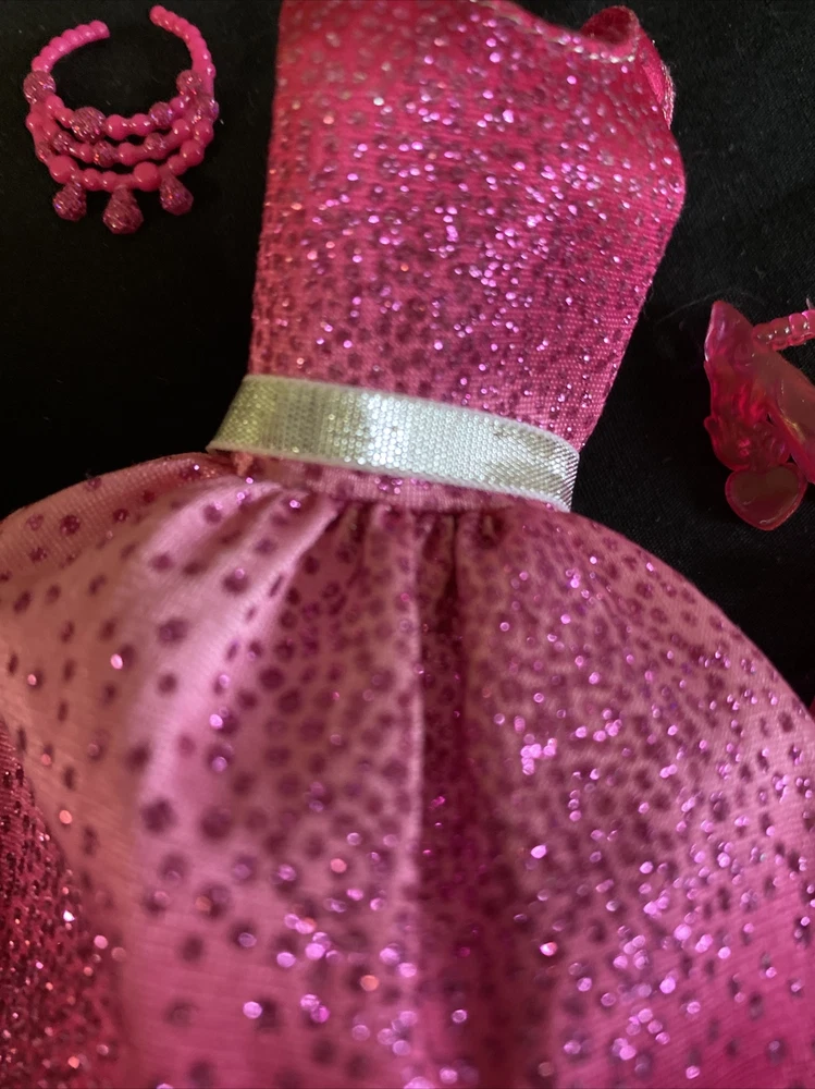 Sparkly Red Barbie Party Dress with Necklace and Fedora Shoes