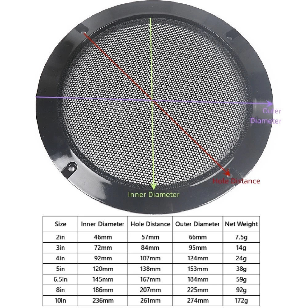 Speaker Grills DIY Accessories 2 Pcs Car Audio Metal Cold Rolled Steel DESCRIPTION Features: brand new and high quality. Resists moisture, temperature and shock. Effectively protect the speaker from rips, cuts, and accidental kick-ins. Excellent resistance to fading and resistance of atmospheric pollution. Easy to install, just insert the mesh grill in the speaker and swivel it clockwise slightly to fix it. DIY speaker grille, suitable for car audio and car decoration, car audio conversion. Speaker Grills only, other accessories demo in the picture are not included! Specification: Main Material: Metal Cold Rolled Steel Circle Material: ABS Type: Car Audio Color: Black Outer Diameter: 274mm(10in)/ 225mm(8in)/ 184mm(6.5in)/ 153mm(5in)/ 124mm(4in)/95mm(3in)/66mm(2in) Package includes: 2 Pcs x Speaker Grills Note: Please be sure to verify the size before you order the item. Please refer to the measurement. Tiny measuring error is allowable in normal range. There might be a little color difference due to the monitor, camera or other factors, please refer to the physical item. POLICES Shipping Payment WARRANTY We only ship to confirmed ebay Order addresses. Please comfirm that your Order address is in line with your shipping address. Please kindly note that the c ombined shipping is not provided because the shipping fee is calculated by weight. Also, the each additional item means exactly the the same color and size. It takes about 7 -15 working days to US; about 10-30 working days to other countries. Transit time may be a little delayed because of the bad weather and customs inspection . If you do not receive your item within 30 working days since payment finished, please contact us immediately for further assistance. Payment must be completed within 5 days. If you have any problems about payment, please contact us via ebay message. We strive for 100% customer satisfaction! Positive Feedback is very important to us. If you have any questions, p lease feel free to contact us via "Ask seller a question" . We will reply your email within 24 working hours. On Jan 2, 2025 at 09:01:59 PST, seller added the following information: