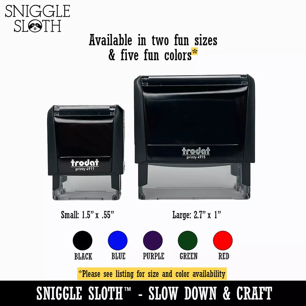 Slow down and craft with this charming self-inking rubber stamp from Sniggle Sloth. The stamp design shown features deeply etched rubber for excellent clarity. The stamp includes its own ink pad in the color listed for an all-in-one solution. The design is located on top of the stamp for easy identification. The size listed refers to the longest side of the stamp design. Use for stamping paper, folders, cards, gift wrap, journals, planners, and more. Use alone or combine with other Sniggle Sloth stamps. Each stamp includes a cover to protect the stamp and extend the life of its ink pad. The stamp’s ink pad can be easily removed to be re-inked to extend the stamp’s usefulness. The materials in this stamp are sourced from top US companies and assembled in our Sniggle Sloth California facility to form a high-quality product you’ll cherish for years.
