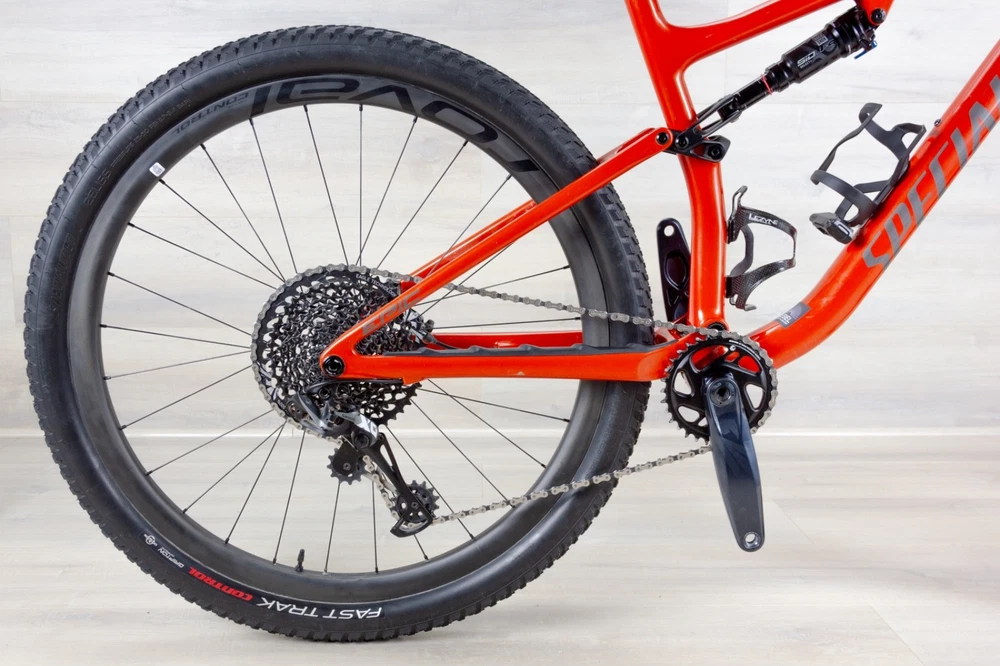 Specialized Epic Evo Expert - Large •Material - carbon •Brakes - Sram G2 4 calipers •MSRP - $7000 •Weight - 24.8lb •Cassette - SRAM 12 speeds 10-50 •Chainrings - 32T •Components group - SRAM X01 12sp •Crank - 175mm •Drivetrain - 1x12 •Fit Range - 5.10 to 6.2 ( approximately ) •Fork - Rock Shox SID Select + •Fork travel- 120mm •Miles - under 300 miles •Rear derailleur - SRAM X01 12sp •Rear shock, travel - Rock Shox Deluxe Select +, 120mm •Seat post - dropper •Stem - Specialized 50mm •Tires - Specialized Ground Control front 2.3 and Fast Trak 2.3 rear •Wheels, material - Roval Control carbon •Tubeless compatibility - Tubeless •Handlebars - Specialized •Saddle - Specialized Power •Mechanic notes: Pre - Owned, Great shape! 100% ready for use! Very minor signs on the frame from regular use.