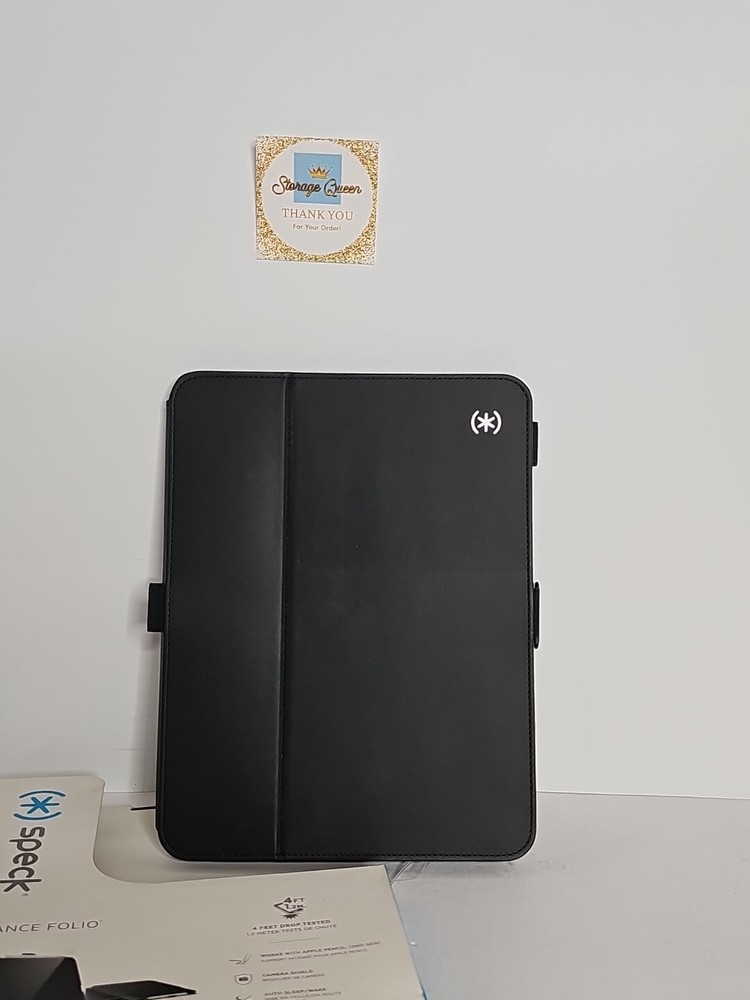 OPEN BOX CONDITION. PACKAGE MAY BE WORN BUT CASE IS IN GOOD SHAPE This Speck Balance Folio Protective Case is the perfect accessory for your Apple iPad 10.9-inch 2022. Its sleek black design and folding folio case type provide durable protection against scratches, bumps, and minor drops. The case is compatible with Apple devices and has been specifically designed to fit your iPad perfectly. The Speck Balance Folio Protective Case is a must-have for anyone who wants to keep their iPad safe and secure. Its slim design allows for easy access to all ports and buttons, while the folding folio case type provides extra protection when the iPad is not in use. With its high-quality construction and attention to detail, this case is the ideal choice for anyone who wants to keep their iPad safe and secure.