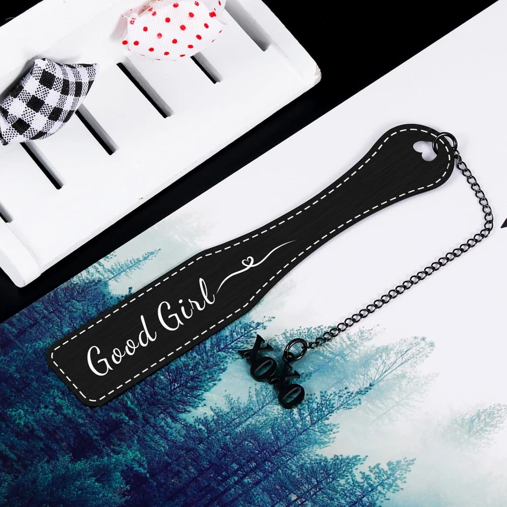 Funny Bookmark Gifts for Reading Women - With this funny bookmark, readers can easily record the progress of reading.Spicy bookmark gifts for female readers.Cute bookmarks for reading women.Bookmarks for book lovers, book worms.Book lover gifts for booknerd.Bookish gifts for female friends, female coworkers.Christmas stocking stuffers for book-loving friends.Valentines Day gifts for her.It will add much fun and same time bring convenience to them when they read books. Spicy Bookmark Gifts for Female Friends - This good girl bookmark is full of cuteness and interest,with the practicability,you can present it for various occasions.A great gift for book lover nerd woman who loves reading.Wonderful gifts for women, girls, females, daughter, sister, mom, wife, fiancee, girlfriend, friends, besties, classmates, coworkers, lady boss or any other ladies who enjoy reading.They will burst into laughter when they receive this hilarious bookmark. Christmas Birthday Gifts for Reader Adults - This bookmark will become a special keepsake for your reader friends.Great gift ideas for birthdays, Christmas, Valentines Day, Anniversaries, Secret Santa, New Year, Easter, Thanksgiving Day, end of year, New Year, back-to-school, off to college, graduation or any other memorable days.Halloween, birthday gifts for women.Stocking stuffers for females.Smutty bookmark for dark romance lovers.Add some joy with this unique bookmark. Smutty Booklover Gifts Ideas for Her - Features a dark and spicy style,this bookmark is a fantastic gift for book lover,bookworm, book fanatic spicy reader, beloved reader, book obsessed, bookaholic.Or for women who love reading for birthday, anniversary, Christmas, engagement, wedding, promotion, bachelorette party favors.Funny bookmark gifts for women, teen girls, female adults, bff, class mates, room mates.Funny gifts for book lovers who love spicy romance dark elements. Good Girl Keychain Gifts for Booknerd - This bookmark is designed with a beautiful and unique shape.It is made of stainless steel,very sturdy and firm,won't easily bend or rust.And its surface is finely polished, no scratches or flaws on it.And the words are well-engraved without spelling mistakes or missing letter, not easy to vanish or fade.Plus with the xoxo accessory,this bookmark gift is very giftable to all your female friends or family members for any occasions. About This Spicy Bookmark Gifts for Reading Women: Funny bookmark for female book lovers: Words engraved on this bookmark"Good Girl" and a xoxo chain accessory.If you are looking for some gifts for your women booknerd friends,this spicy bookmark will meet all your needs.Unique bookmark for female friends, women coworker,sisters, wife, girlfriend, aunts, niece, daughter, soulmate, spicy reader, bookish girls, bookworm, besties, boss lady, female mentor, women leader.Book club gifts for women, reading accessories for book lovers, birthday gift for booknerds or bookish. Bookish items for various occasions: With eye-catching appearance and good utility.This bookmark is always the first choice for women readers.Surprise gifts for friends book lovers.Stocking Stuffers for women,.Christmas gifts for women, gifts for women who enjoy reading. Valentines day gifts for her, Valentines gifts for girlfriend.Dark Romance book club gifts for ladies.Bachelor party gifts for her, coworkers gifts for women, book lovers gift ideas.