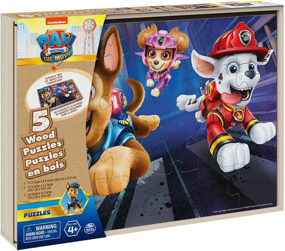 About this item This Paw Patrol 5 wood puzzles box set is packed with fun! Kids will love challenging their brains to put these jigsaw puzzles together and discover the cool Paw Patrol scenes! Comes with a wooden box to store the piece, nice and neat when playtime is over. What's included: one 24-piece wooden puzzle, four 8-piece wooden puzzles and wood storage box. For ages: 4 and up (choking hazard). Skill level: intermediate › ||DPSP-AMB09KJZKPMF Our Store We have more items available. Please check them out. Shipping & Handling Flat shipping rate, if specified, does not apply to Canadian territories and remote areas. For U.S., flat shipping rate only applies to lower 48 states. Please contact us for shipping rate if flat shipping rate does not apply to you. Upon receipt of payment, item will ship via Canada Post surface or UPS, Fedex Ground service or another economic service within the timeline specified in item listing. If possible, we will combine shipping for multiple items. International Orders Import duties, taxes, customs fees and charges are not included in the item price or shipping charges. These charges are normally collected when you pick up the package. Please check with your country's customs office on what these additional charges will be prior to buying the item(s). International buyers are responsible for these charges. Please note that package shipped from outside your country can be held up in customs and it can cause delay in shipping time. This is beyond our control and there is nothing we can do to speed up the process. Sales Tax For the Canadian buyer, applicable retail sales tax will be charged. Taxes are charged on both Item Price and Shipping & Handling charges if applicable. Store Policy Sales Agreement Upon purchase, you have entered a binding contract under the terms of the listing. If an item is out of stock or on backorder , you will be notified and given the option to wait for the item to become available, choose another item, or a full refund. Backordered items are shipped as they become available. Return and Refund Unless specified otherwise, every item purchase (except health, hygienic, food products and items with No Return Accepted specified in the listing) comes with unconditional money back guarantee minus shipping & handling charge and 20% restocking fee . Before returning, please contact us for a RMA number. All returns must come with a RMA number. Return without a RMA number will NOT be accepted. Buyer is responsible for the shipping cost of returning the item(s) to us and all original shipping, handling, insurance, and other fee associated with the returned item(s) are not refundable. For free shipping item(s), we still pay for shipping when sending item(s). The shipping cost associated with free shipping item(s) is not refundable. All merchandise returned must be in its original states with tag intact, undamaged, clean and unused. Any return must be made within 30 days of receipt. Upon receipt and careful examination of the returned merchandise, refund will be issued and you will be notified after the refund is processed. Please allow 5 business days from the time we receive your returned item(s) for your refund to be issued. Communication All communication must be conducted via online message. We do not offer customer service over the phone. We answer all messages promptly, usually within 1-2 days. As a general note, if you do encounter a problem with your item(s), please contact us as soon as possible before leaving a negative feedback. We will do our best to help you. Contact Us For local pickup, special requests and special offers, please contact us.