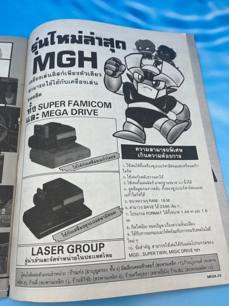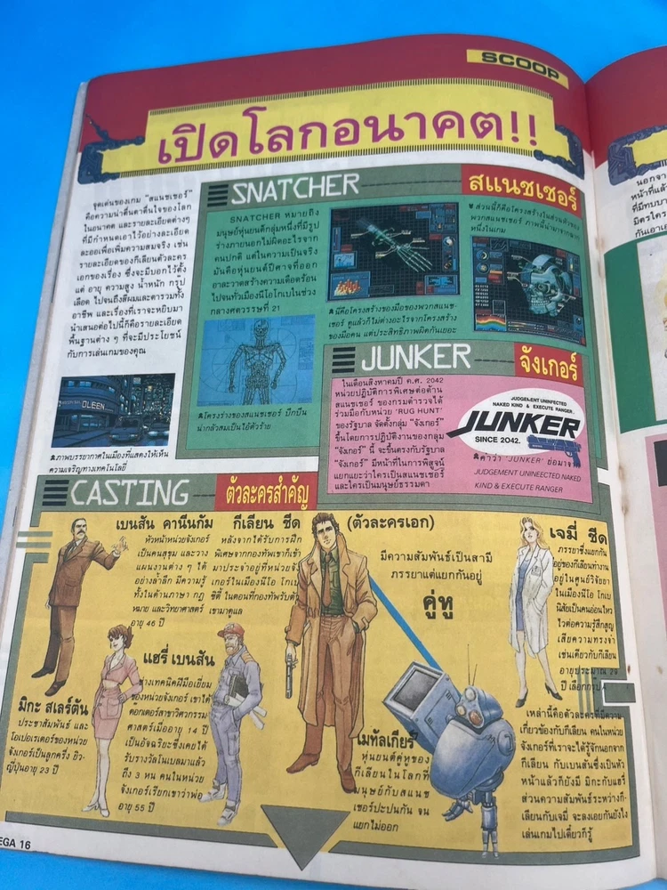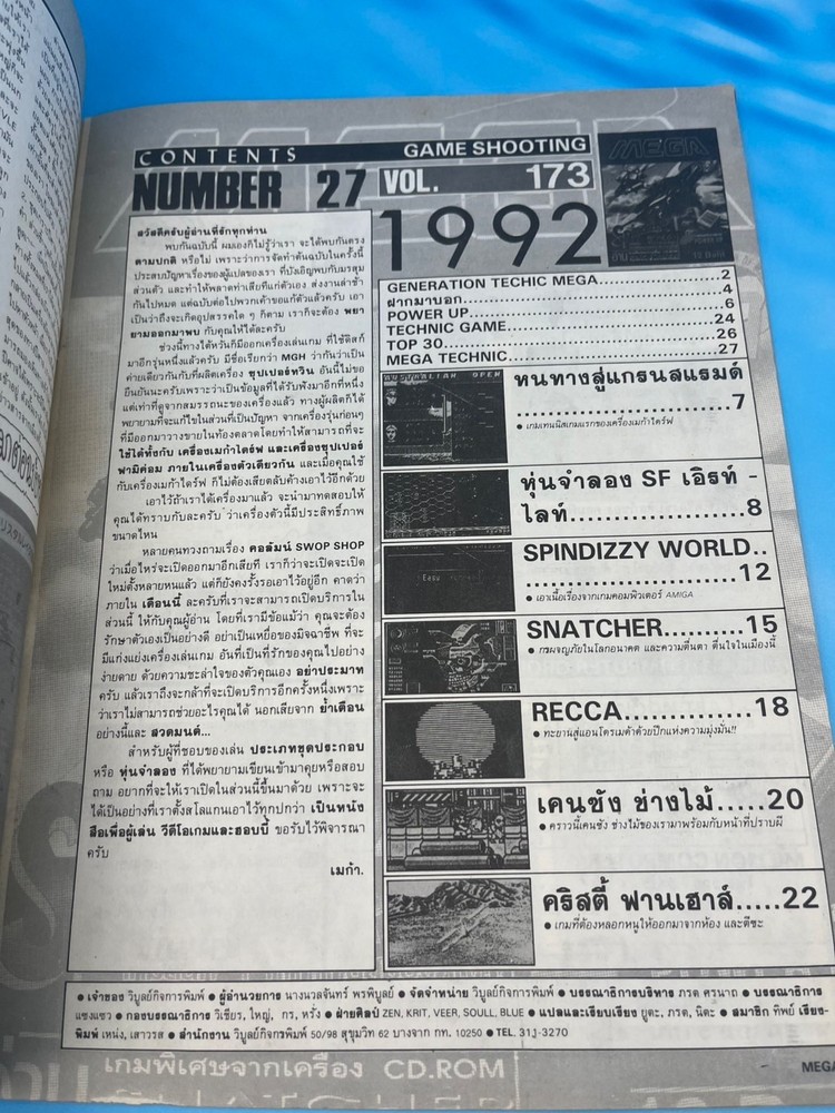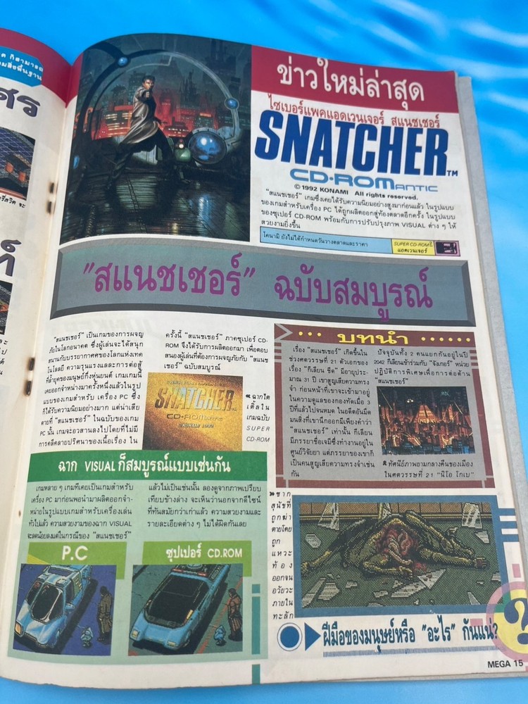 For collectors: this is a true gem. ✅ Features • Original MEGA Games Magazine issue #27, published in 1992 in Thailand • Cover story on Spindizzy Worlds (Super Famicom / Amiga), an early-’90s puzzle-action masterpiece • Also features a full exclusive preview of Snatcher (CD-ROMantic) by Kojima Productions / Konami • Additional game coverage includes: – Recca (Famicom, Naxat Soft) – Earth Light (SF robot strategy game) – Kenchan (Game Boy) – Cresty Forest and more retro content • Includes hardware news about MGH , a rare Thai hybrid console compatible with both Super Famicom & Mega Drive • 100% in Thai language – published locally during the golden era of 16-bit gaming 🧭 Why it’s so rare Authentic Thai-language gaming magazines from the early ’90s are extremely scarce . Distribution in Thailand was very limited at the time, and few copies were preserved. This issue captures the historic moment when Japanese console culture spread through Southeast Asia — especially featuring the cult cyberpunk classic Snatcher by Hideo Kojima. A true collector’s piece for retro gaming and Konami fans worldwide. 💎 Condition Very good condition for its age (1992). Colors remain vivid, binding intact, normal light wear on cover edges. Complete issue with all pages, no tears or writing. Not sealed. See all photos for details. 📦 Shipping Ships worldwide from Thailand with secure packaging. 🔍 Spindizzy Worlds, Snatcher CD-ROMantic, Hideo Kojima, MEGA Games Magazine Thailand, 1992 Thai video game magazine, Konami retro, Super Famicom, Amiga games, Famicom Recca, Earth Light, Game Boy retro, Thai gaming culture, rare Asian video game magazine, 16-bit era