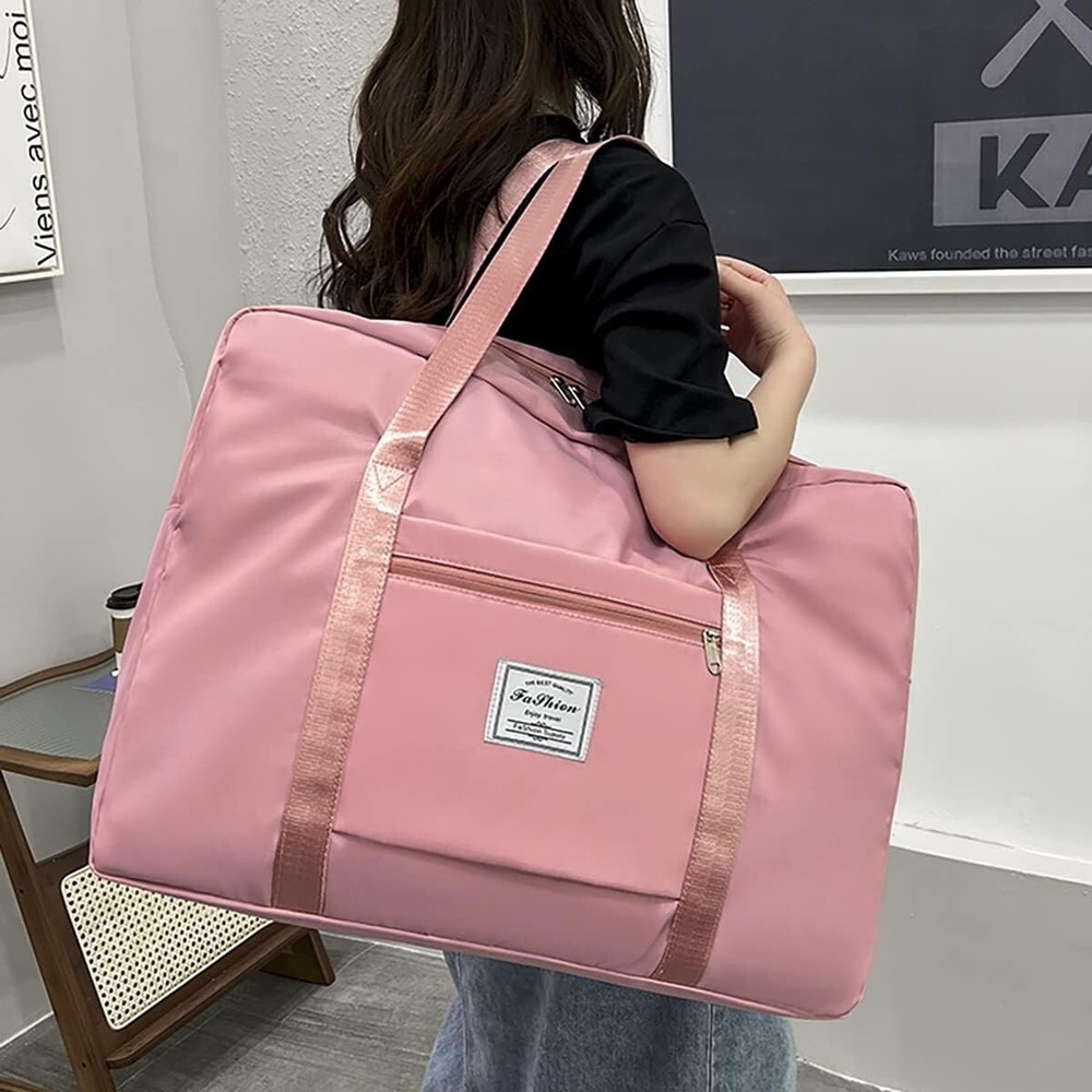 Travel Duffel Bag, for Spirit Airlines Personal Item Bag 18x14x8 Frontier Airlines Carry on Luggage Bag, Weekender Bag for Women and Men (A-Pink) 【Save Your Carry-on Charges】 Our carry on bag measures 17 x 13 x 6 inches and fits personal item size 18 x 14 x 8 inches of Spirit Airlines & Frontier Airlines perfectly. It can be placed under seat to save your overweight charges. 【Easy Carrying】 The integrated trolley sleeve slides over the rolling luggage handle making carrying a breeze. Your ideal travel boarding bag for business or personal travel. 【Large Capacity Weekender Bag】 Large storage space makes it easy to organize your clothing and travel items. Its external storage pouch offers quick access to small items. 【Water-Resistant and Durable Duffel Bag】 This duffel bag is made of high-quality polyester oxford fabric which is water-resistant and durable. Tight stitching, reliable zippers and sturdy carrying handle, every detail is delicately made, giving you a high-quality using experience, no need to worry any tearing or break during trips. Ideal for long-term use. 【Multi-purpose Travel bag】 This carry-on tote bag is a perfect reliable companion for travel and gym. It is a great as travel duffel bag, weekender bag, overnight bag, gym bag, yoga bag, workout bag etc.
