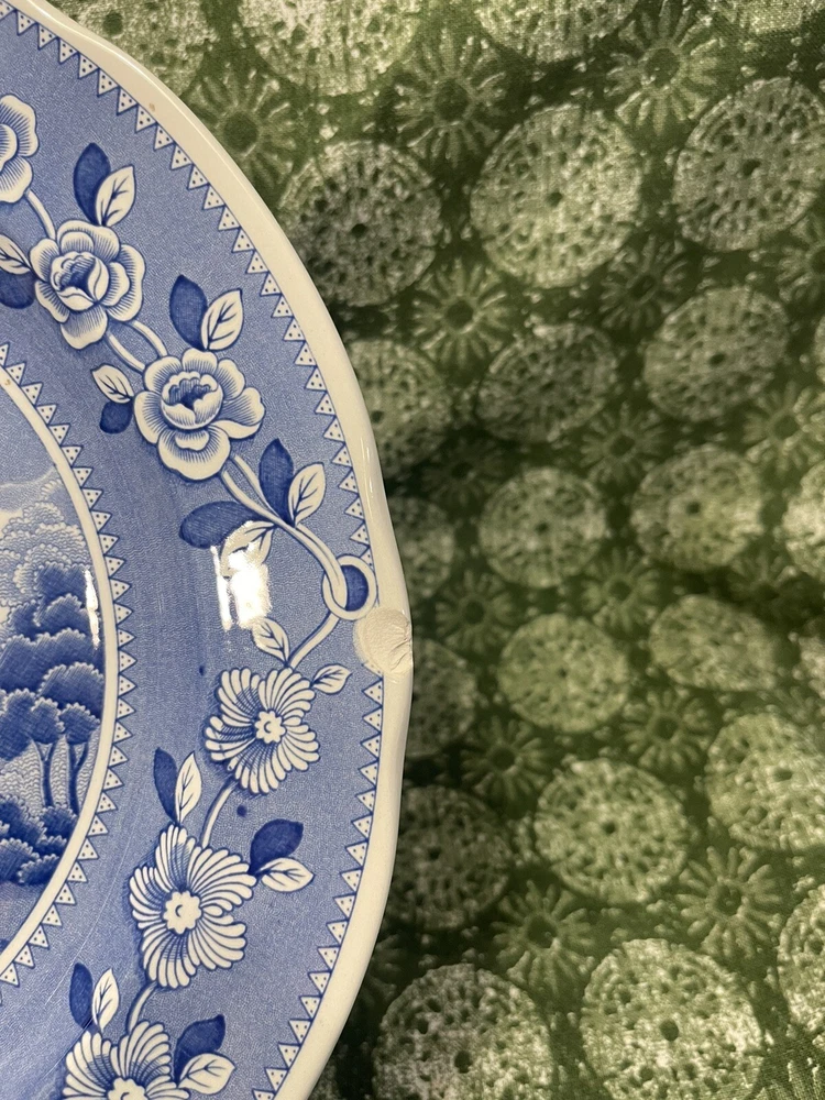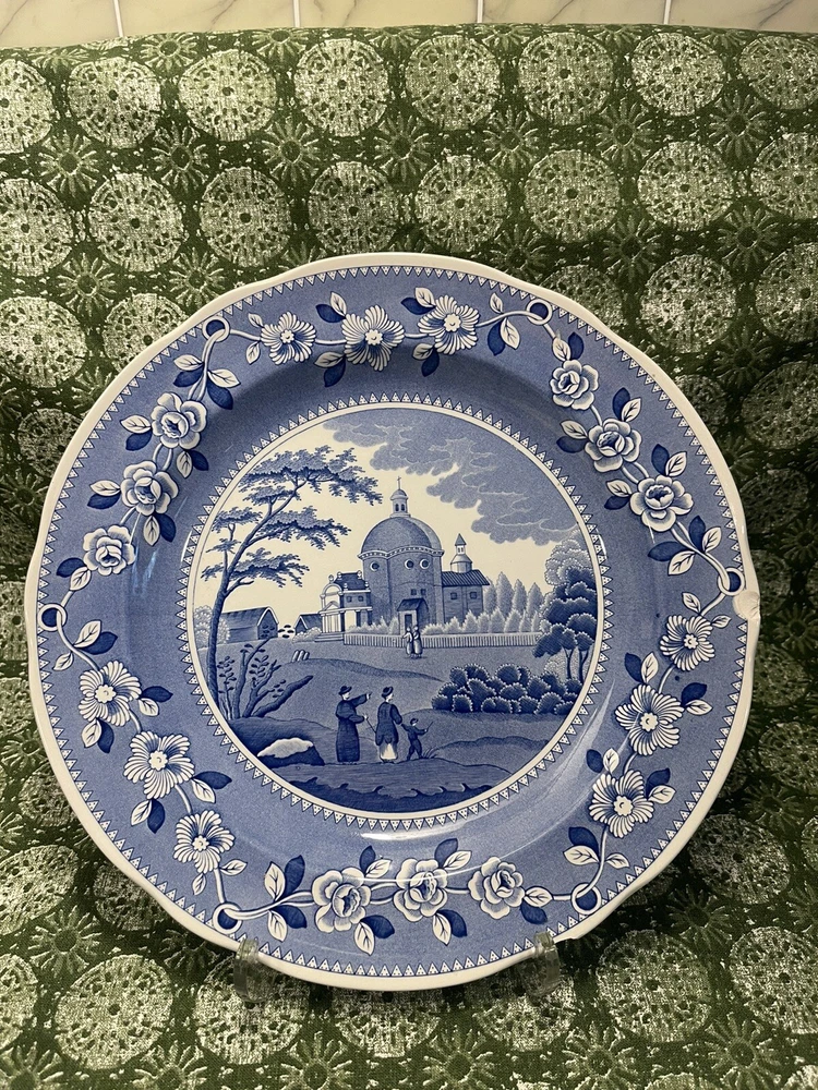 Please see photo for chip. This is a Spode Engravers' Archive Collection dinner plate with a floral pattern. The plate is made of porcelain and has a round shape. It features an engraved design and has a printed backstamp. The plate was manufactured in the United Kingdom and is in fair condition.