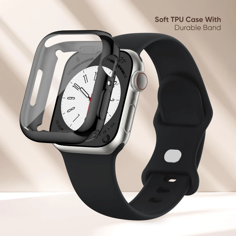 Sport Band Compatible for Apple Watch Band 40mm 41mm 44mm 45mm with Screen Prote Features: Compatible Models: The silicone apple watch band with case compatible with apple watch 40mm 41mm 44mm 45mm, iWatch Series 9/8/7/6/5/4/SE. 40mm/41mm fits for 5.1"-7.1" (130mm-180mm) wrist; 44mm/45mm fits for 5.9" - 7.9" (150mm-200mm) wrist. Please check the model on the back of your iWatch to choose the correct size. Band and Cover Combo: The apple watch bands are made of premium soft silicone, with high quality soft TPU apple watch case, both feels incredibly smooth on skin, delivers all-day breathable comfort for workout, exercises, running, hiking, during sleep and more everyday hustle and bustle. All-round Protection: Our Apple Watch bands attached anti-fall, shockproof and scratch resistant apple watch screen protector case is designed to add a layer of protection to your expensive watch, the premium quality TPU case for 360-degree full protection for your iWatch. No Fear of collision, scratches, daily wear, accidental drops and bumps even in the harsh environment. Easy Installation: The soft nature of the iWatch case ensures that it is easy to adjust and fits the watch perfectly, and the iWatch band comes with pin-and-tuck closure design, which locks onto watch interface precisely and securely. No tool needed,easy to install and remove,provides a secure and comfortable fit for extended wear. What U Get: 1*Apple Watch sport band, 1*Apple Watch protective case, and reliable after-sales support from Adorique. Enjoy a one-year warranty to ensure your peace of mind with your purchase. Features: Compatible Models: The silicone apple watch band with case compatible with apple watch 40mm 41mm 44mm 45mm, iWatch Series 9/8/7/6/5/4/SE. 40mm/41mm fits for 5.1"-7.1" (130mm-180mm) wrist; 44mm/45mm fits for 5.9" - 7.9" (150mm-200mm) wrist. Please check the model on the back of your iWatch to choose the correct size. Band and Cover Combo: The apple watch bands are made of premium soft silicone, with high quality soft TPU apple watch case, both feels incredibly smooth on skin, delivers all-day breathable comfort for workout, exercises, running, hiking, during sleep and more everyday hustle and bustle. All-round Protection: Our Apple Watch bands attached anti-fall, shockproof and scratch resistant apple watch screen protector case is designed to add a layer of protection to your expensive watch, the premium quality TPU case for 360-degree full protection for your iWatch. No Fear of collision, scratches, daily wear, accidental drops and bumps even in the harsh environment. Easy Installation: The soft nature of the iWatch case ensures that it is easy to adjust and fits the watch perfectly, and the iWatch band comes with pin-and-tuck closure design, which locks onto watch interface precisely and securely. No tool needed,easy to install and remove,provides a secure and comfortable fit for extended wear. What U Get: 1*Apple Watch sport band, 1*Apple Watch protective case, and reliable after-sales support from Adorique. Enjoy a one-year warranty to ensure your peace of mind with your purchase. eBay integration by