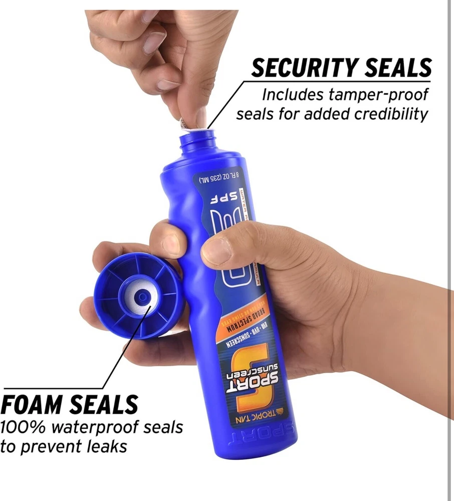 New, box is damaged as seen in photos Everything included! 16 OUNCES TOTAL: Includes 2 convincing sunscreen flasks that hold 8oz each, which equals 10 shots total SAVE YOUR SPENDING MONEY: Perfect for a day out with friends, cruises, festivals, beach days, theme parks, and more UNIQUE DESIGNS: 15 SPF and 30 SPF sunscreen bottle designs make it easy to fool security so you can take your flask virtually anywhere EASY FILLING: Includes mess-free funnel so you can easily fill flasks with your favorite drinks FOOD GRADE PLASTIC: Made from food safe materials, always wash before using Ships within 24/hrs!