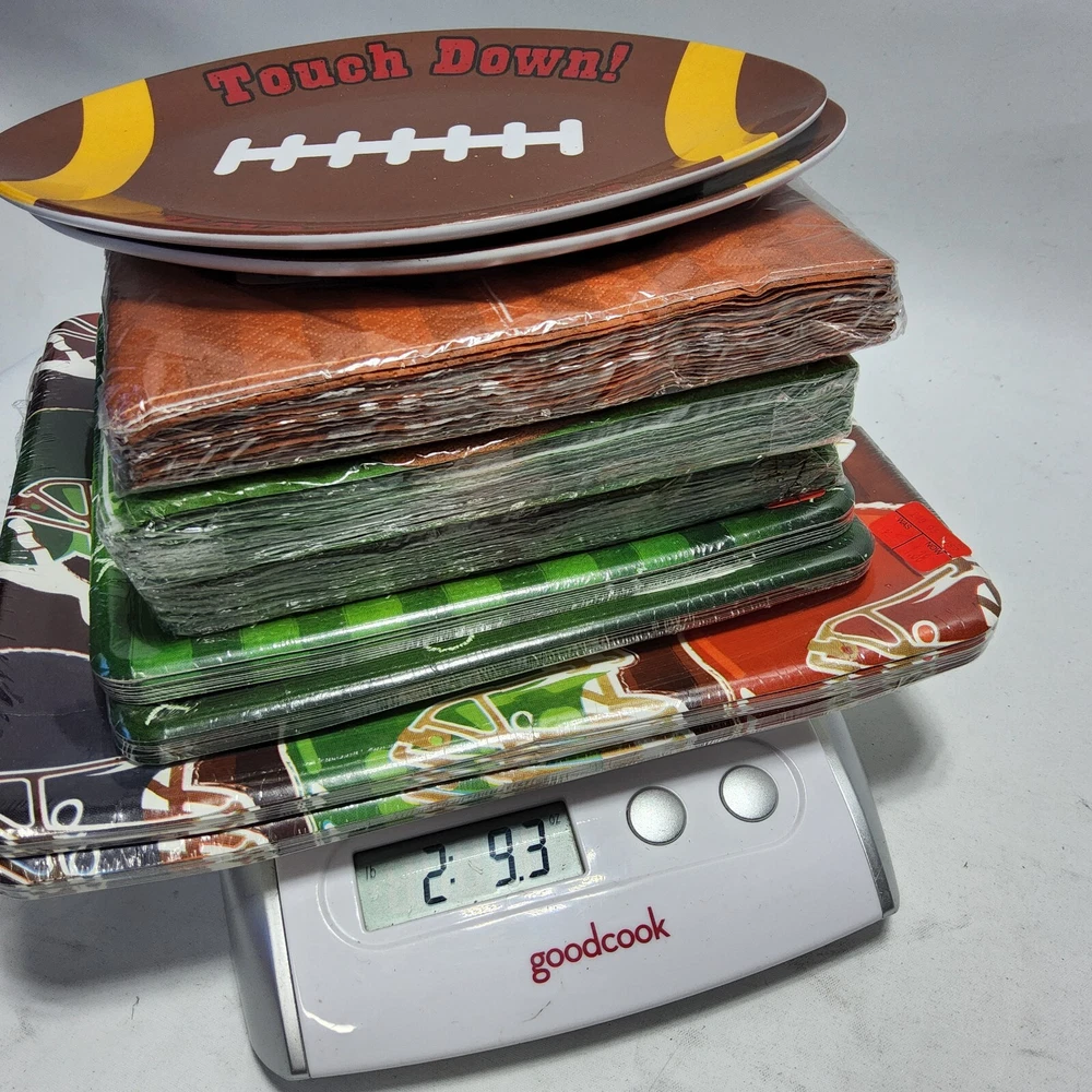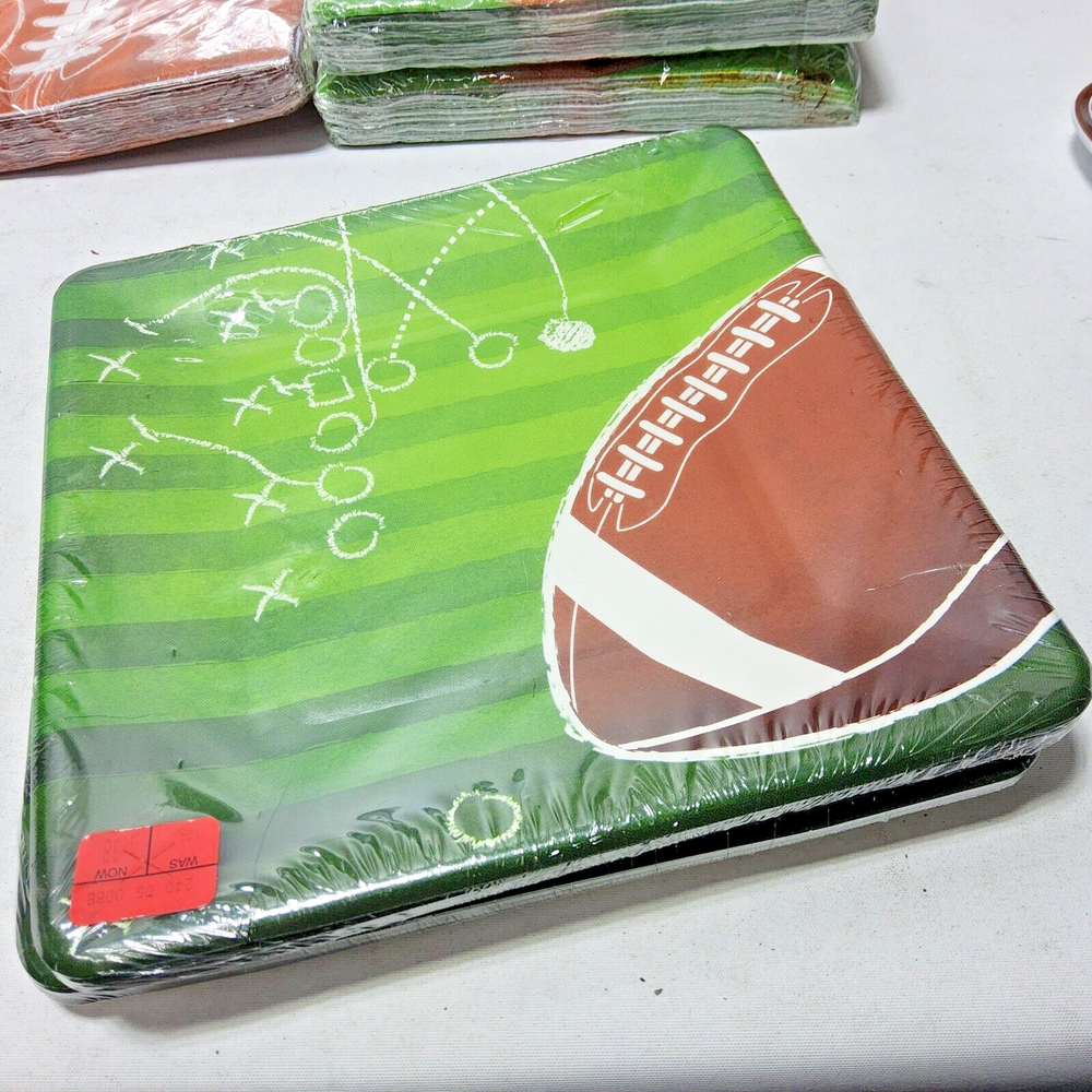 Sports themed party supplies football basketball dishes napkins trays tailgate New unopened 2 9x9 footbal helmets packs cardboard dishes. 10 in each pack 2 7x7 football field packs cardboard dishes. 8 in each pack. 3 5x5(when folded) football themed napkin packs. 18 in each pack. 2 7x5(approximate) football plastic serving trays. 3 5x5(when folded) basketball themed napkins. 16 in each pack Welcome to Treasure Suite . A cozy little corner of the internet for a wide array of household items! These household items are curated from diverse sources including yard sales, thrift stores, closeout stores, flea markets, and estate sales. My sourcing strategy not only allows me to offer an eclectic mix of products, but also ensures that our prices remain highly competitive. ***What is Offered*** *Home decor* Discover a variety of discounted home decor items that can add charm and functionality to any living space. From vintage finds and antique treasures to contemporary pieces, there is something to suit every taste and style. *Kitchenware and appliances* This section features everything from cookware and utensils to small appliances and gadgets. You'll find a nice selection that caters to both your culinary and aesthetic needs. *Home Improvement and DIY* For the DIY enthusiasts, what is offered is a range of home improvement tools and supplies. From power tools and hardware to paint and crafting materials. Perfect for those looking to tackle projects around the house. *Cleaning Supplies and Organization* Keep your home spotless and organized with a selection of cleaning supplies and storage solutions. Offered is a variety of products that help you maintain a tidy and efficient living space. *** Why Shop With TreasureSuite? *** *Competitive Pricing* Thanks to my diverse sourcing methods, costs can be kept low and pass the savings on to you. My pricing is designed to be budget-friendly without compromising on quality or selection. *Unique and Diverse Inventory* Inventory is constantly changing as i acquire new items from different sources. This ensures a unique shopping experience each time you visit. *Sustainability* By sourcing items from yard sales, thrift stores, and other second-hand markets, what is contributed is a more sustainable shopping model. You can feel good about giving pre-loved and opened but new items a home and reducing waste. *Quality and Condition* I take pride in the quality of products acquired. Each item is carefully inspected before being listed, ensuring that you receive items in excellent condition. *30 day money back guarantee. Buyer pays for return shipping. Explore my store and discover the charm of finding unique household items at unbeatable prices. Thank you for choosing Treasure Suite for your home needs!