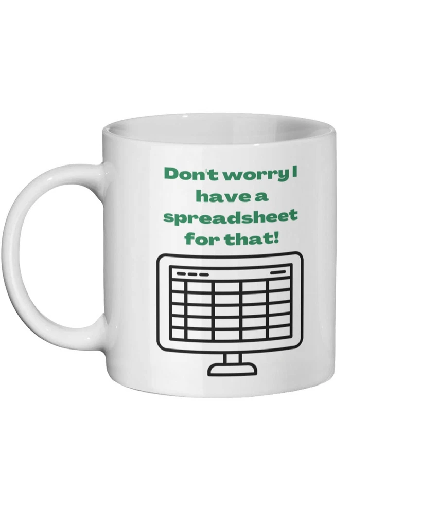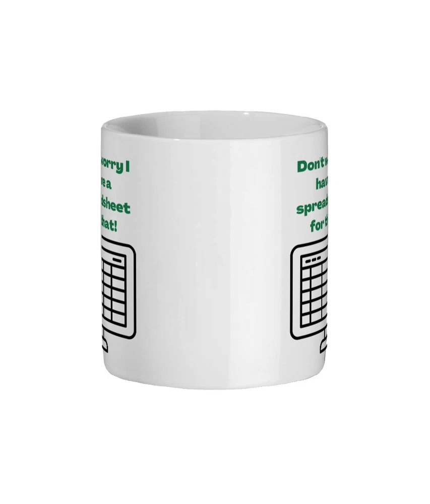 Spreadsheet Lover Mug Spreadsheet Joke Gift Mug For Work Mug For Office Spreadsheet Gift Funny Spreadsheet Mug Funny Spreadsheet Gift Product Details.. This high quality 11oz. ceramic white mug has a premium hard coat that provides crisp and vibrant color reproduction sure to last for years. Perfect for all hot & cold beverages. The highest quality printing possible is used. It will never fade no matter how many times you wash it. Material: 100% Ceramic. Print both sides. Dishwasher and Microwave Safe. High Gloss + Premium White Finish. Printed in the U.S.A. Personalized & Custom. We support personalized and custom mug to add custom, when placing an order, you can add notes to the "order note" in shipping address section. Also you can contact us directly via message. Shipping Info. Ready to ship in 1 to 2 business days, All products are made-to-order and proudly printed in the United States. Shipped by USPS and DHL, You will receive your order in 5-7 days. Replace & Refund. All products are defective during shipping broken, chipped will be replaced free of charge. You are not satisfied with the product, we will refund 100% money to you. If any other issues arise, please do not hesitate to message, we would be more than happy to assist you.