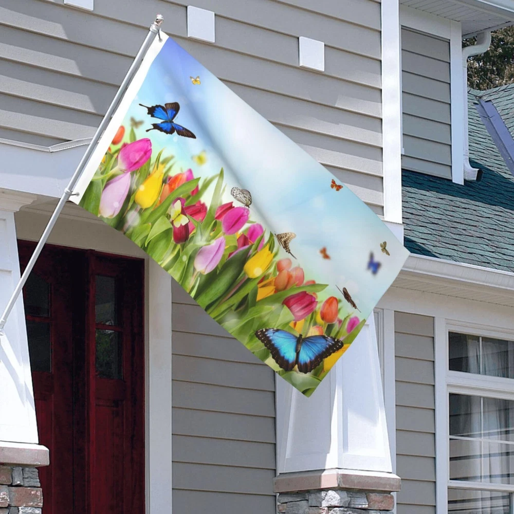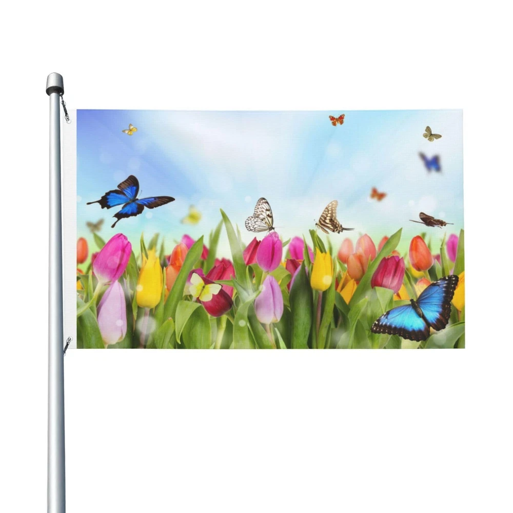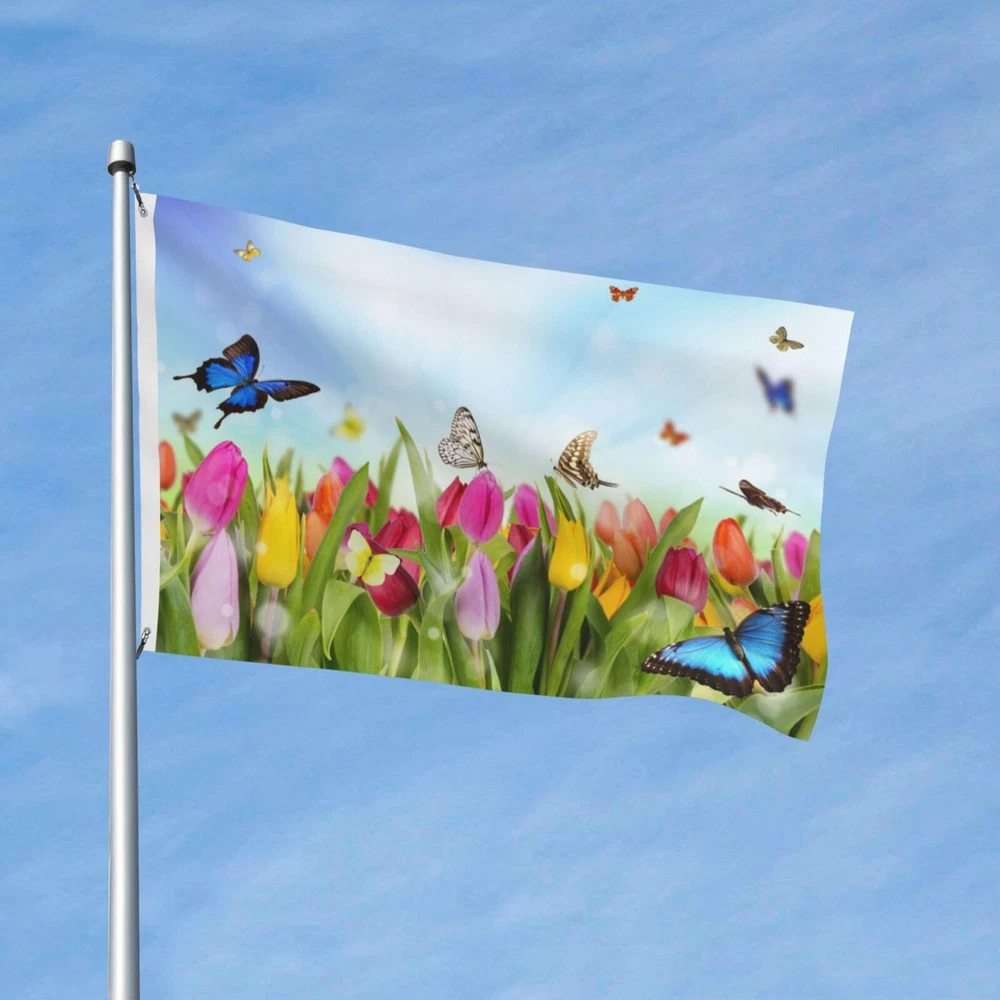 Spring Flowers And Butterflies Flag 3x5 Ft Outdoor Polyester Garden Flag Doub...
