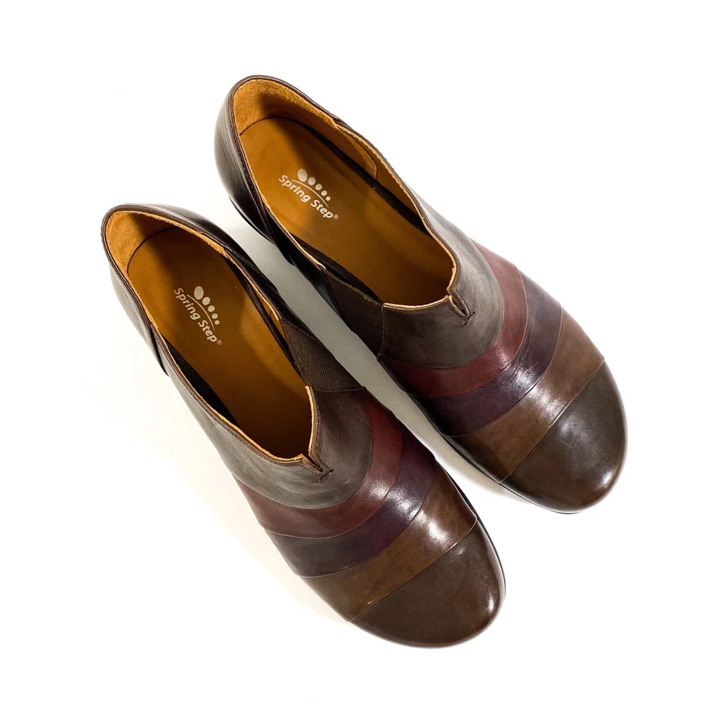 Spring Step Diplomat Multi-Stripe Brown Leather Loafers Women's Size US 7.5 / EU 38 Please look at all pictures (and zoom in) ~ they are part of the description! Item pictured is the exact item you will receive. Very good pre-owned condition! Outsoles have light wear. (see photo # 11) Small scuff on heel. (see last photo) Stamp marks on inside back of heels ~ look like part of construction. (see last photo) NO ORIGINAL BOX Carefully packaged and box-shipped ~ USPS calculated shipping 30-day free returns accepted - Original shipping cost will NOT be refunded. Items must be returned in the same condition received or may be subject to return fees. New items must be unused/unworn, tags still attached/packaging still intact. Pre-owned items must not have additional wear or use. Clean, smoke-free, cat friendly home. Please message prior to purchasing if you have any questions! Thanks for looking!