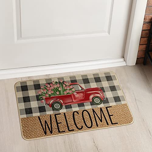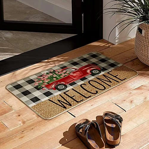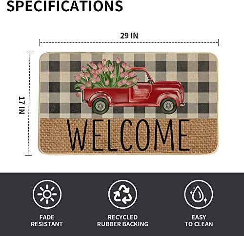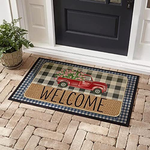 Return Policy Fast Delivery Trusted seller Welcome Spring Door Mat 17 x 29 Inch, Seasonal Truck Flower Decorative Doormat Non-Slip Rubber Backed Entryway Rugs for Indoor Outdoor Entrance Floor DM057 Product Description Spring decoration - Welcome guests to your home with this unique, seasonal doormat. Perfect for any deck, patio, porch, veranda, bathroom, Bedroom, kitchen and outdoor indoor entryway Durable and non-slip - Backed with non-slip recycled rubber and topped with 100% Burlap felt that is low-profile to reduce chances of tripping, high-quality durable construction that is UV and stain resistant Spring theme design - Measures 17" x 29" and features 0.25" slim, making it just the right size for every entryway. Our stylish doormats make a beautiful addition to your entryways, craft rooms, and office spaces. Keep the house clean - This rubber door mat can keep the house clean. You can clean it by shaking, sweeping or vacuuming, support machine wash which is very convenient and effective. Risk free - Each doormat, fade resistant and extra durable for lasting enjoyment. AND we offer 60 days money-back warranty and 24/7 customer support give you the best shopping experience ever. Shipping Returns Payment Shipping Shipping is FREE to all addresses other than APO/PO boxes in the lower 48 states. All our stock ships from US-based warehouses. Shipped via USPS or UPS (depending on location and package weight) Unless stated otherwise, all orders will ship within 24-72 hours of your payment being processed. Check our feedback to see the great reviews of FAST shipping we offer. Returns Seller does not accept returns Payment We currently accept payment via eBay managed payments only. Once payment is cleared, we will dispatch your shipment within 1-3 business days. Please refer to the "Shipping" tab for more information regarding shipping speed to your destination.