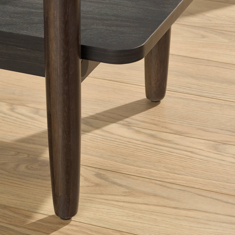 This chic, open bookshelf from the Better Homes & Gardens® Springwood Collection will offer a versatile and trendy solution to any storage dilemma. The large shelves of this 5 shelf bookshelf are a perfect place to display home décor items like decorative plants, an array of knick-knacks and collectibles, and framed photos of your family and friends. Standing on fashionably tapered legs, this tall bookcase with five spacious shelves will provide the room to store a collection of novels, children’s books, or organizing totes or baskets. Mix and match any number of items on this tall, display bookcase. There’s room for everything! Its beautiful and bold design makes this open bookshelf a great addition to the living room, office, or even in the bedroom. Any room in the home will benefit from the neutral tones of this dark, Charcoal finish. Finished on all sides for any angle of placement, this beautiful 5-shelf bookcase will create functional storage solutions without sacrificing style. Assembled Dimensions: 35.98" L X 14.88" W X 71.97" H Open shelving for storage and display Holds books, binders, framed photos, collectibles, and more Solid Wood Accents Charcoal finish Model #: 434761 Box Dimensions: 77.01" L x 17.13" W x 6.89" H