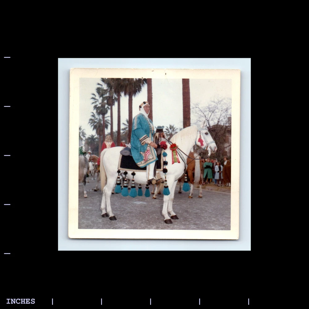 Square Color Photo LOS ANGELES 1963 HORSE AND RIDER KEFFIYEH