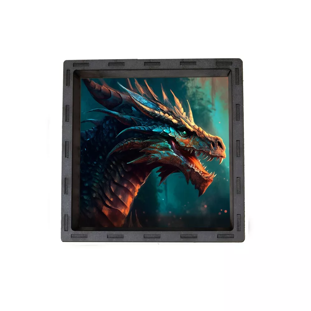 Square Dice Tray, Dragon Wooden Dice Tray, D&D Rolling Tray for tabletop Games