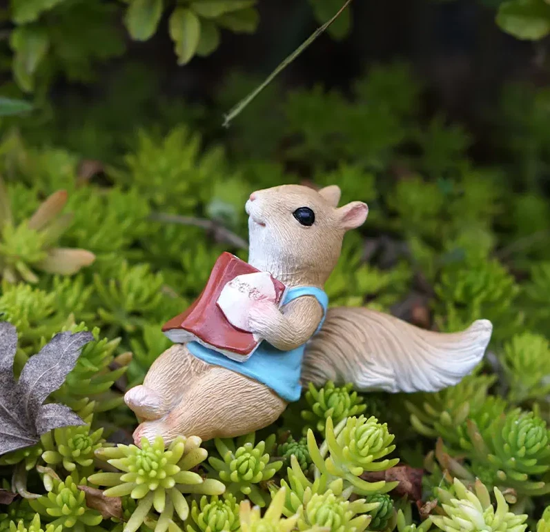 Squirrel Read Book Miniature Fairy Garden Statue Resin Small Figurine Decor Gift